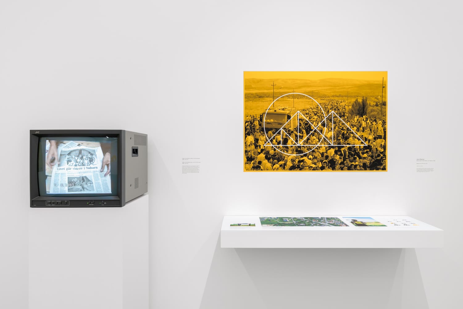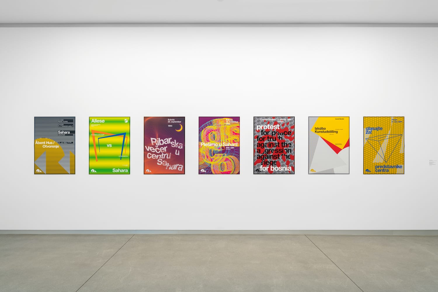 CLAREMONT, CA — Sahara: Acts of Memory, on view at the Benton Museum of Art at Pomona College, explores how graphic design can transform the way we understand and relate to others. Split between two galleries, the exhibition reinterprets the experiences of graphic designer Amir Berbić, who, with his parents and younger brother, spent over a year in a Denmark refugee camp after the war in Bosnia displaced them from their home in Sarajevo. To instill a sense of community and belonging in their new environment — the families lived in tents set up on a sandy plot of land nestled within the Danish countryside — Berbić’s father, Ismet, named the camp “Sahara” and designed a logo of a yolk-yellow rising sun against pyramidal forms.