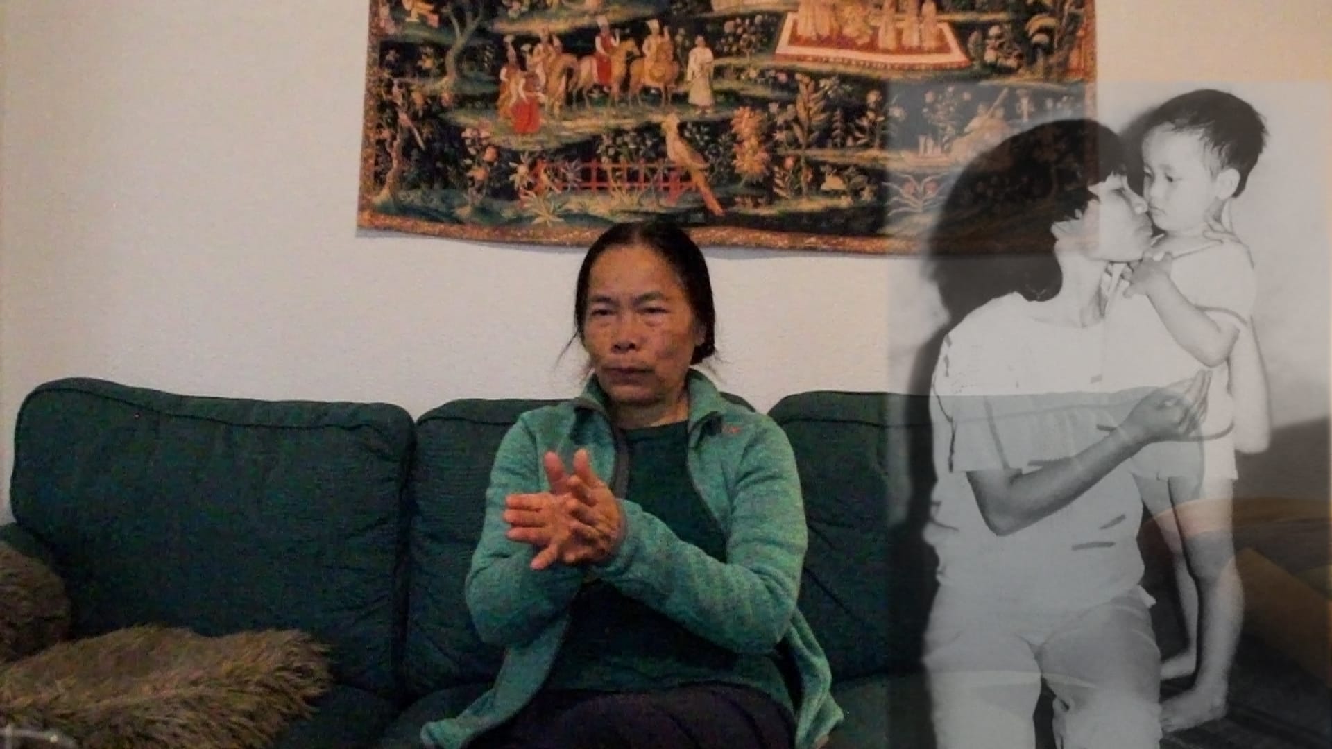 The fractal endurance of immigrant memories, so keenly expressed in Akele Jorde’s film, run through the entire exhibition. Leipzig-based Syrian artist Khaled Abdulwahed’s video, Background (2023) tracks the few remaining images of his father’s stay in Germany as an engineering student in the 1950s, collaged with observational footage of his own surroundings. Berlin-based Iraqi artist Hiwa K’s five-channel video, QATEES (2009), centers on an Iraqi man who repairs television sets to glean news from opposite sides of conflict, as he lives in hiding during the rule of Arab Socialist Ba'ath party (backed by East Germany). And Angolan artist Kiluanji Kia Henda’s photo triptych, “Karl Marx-Luanda” (2006/ 2023), centers the decaying hulk of a Soviet ship with that name, while Berlin-based Vietnamese artist Sung Tieu’s One Thousand Times (2023) pays homage to the cement exteriors of the East German social housing, in which her family lived.