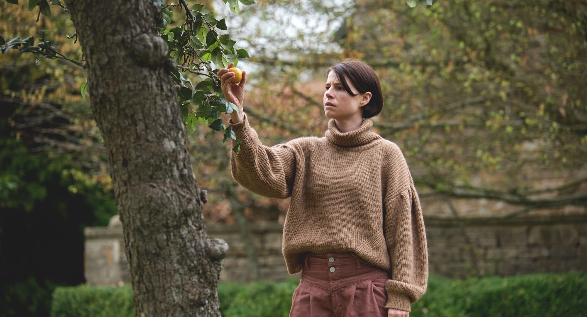 If it isn't evident from the basic-to-the-point-of-elemental title, Men is thematically ambitious. The latest heady thriller from writer/director Alex Garland posits an alternate version of the Biblical creation myth. While a lot of the film is open to interpretation, this aspect is fairly blatant. Early on the protagonist Harper (Jessie Buckley) picks a crisp apple off the tree in the front yard of the sumptuous manor she's rented for a few weeks in the English countryside. In case you somehow missed the reference, the house's owner Geoffrey (Rory Kinnear) then makes a "forbidden fruit" joke — aggressively underlining, circling, and highlighting the capital-T Theme. Harper has, foolishly, tried to get away from it all while in the midst of mourning. In a horror movie, that's just asking for trouble.