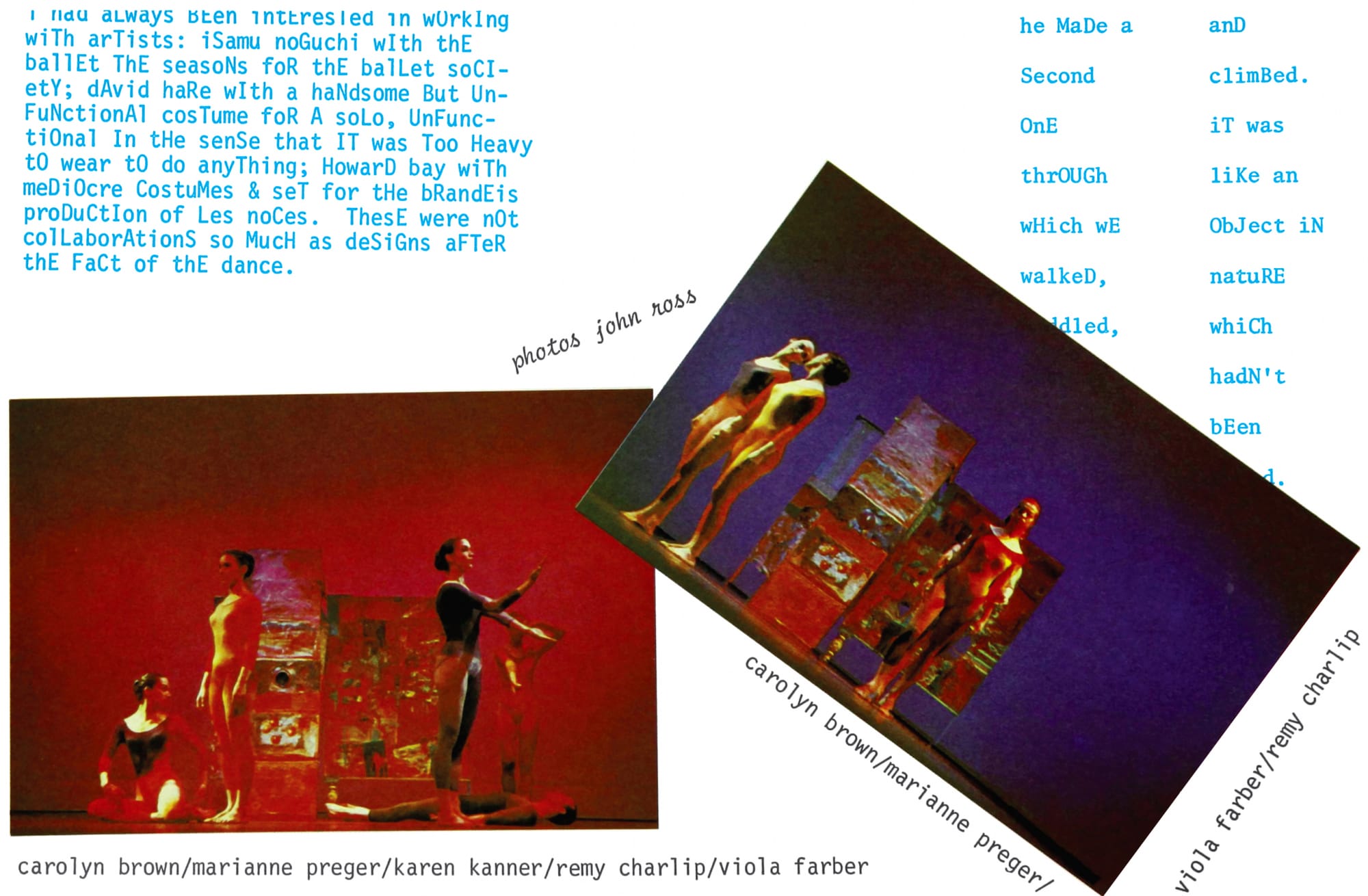 Changes: Notes on Choreography, a book written by legendary choreographer Merce Cunningham in 1968 and recently reissued by The Song Cave on the occasion of what would be his centennial, offers a compelling peek into the inner workings of an artist’s mind. More of an art- or archival collection than a typical book, Changes gathers sketches, notes, photographs, programs, and all other manner of ephemera in a creative package that often takes some maneuvering to read in the traditional sense. Printed text is frequently overlaid on top of handwritten notes or images; sometimes one must turn the book upside down to read a full sentence.