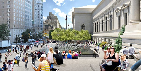 For more about the plans, complete with “A rendering of the new plaza in front of the Metropolitan Museum of Art, as envisioned by the Philadelphia design firm OLIN” see the New York Times Met Aims to Build Itself a Museum-Quality Plaza.