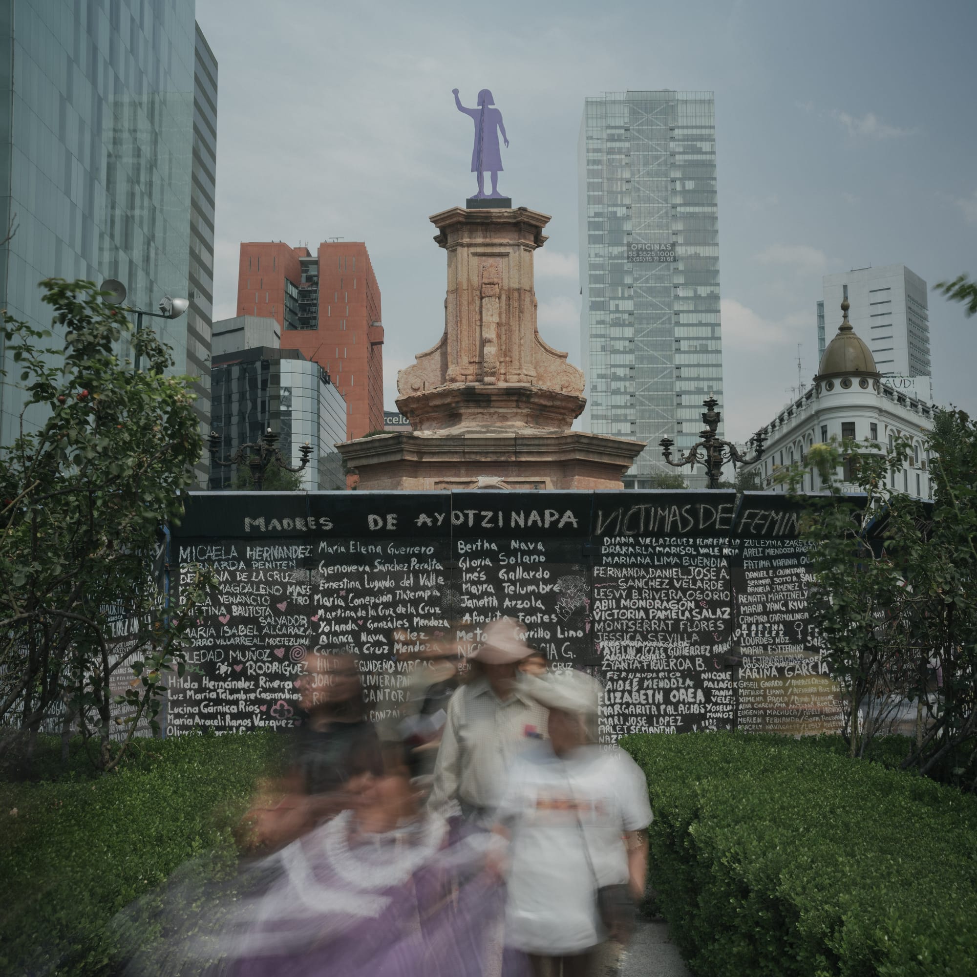 Feminist organizers later erected a guerrilla monument to victims of femicide on the plinth.