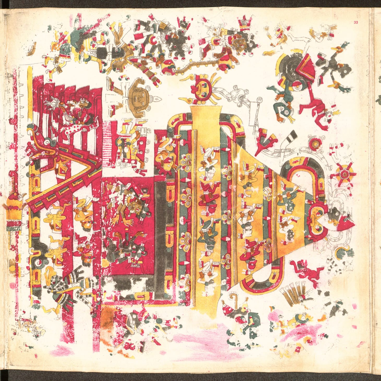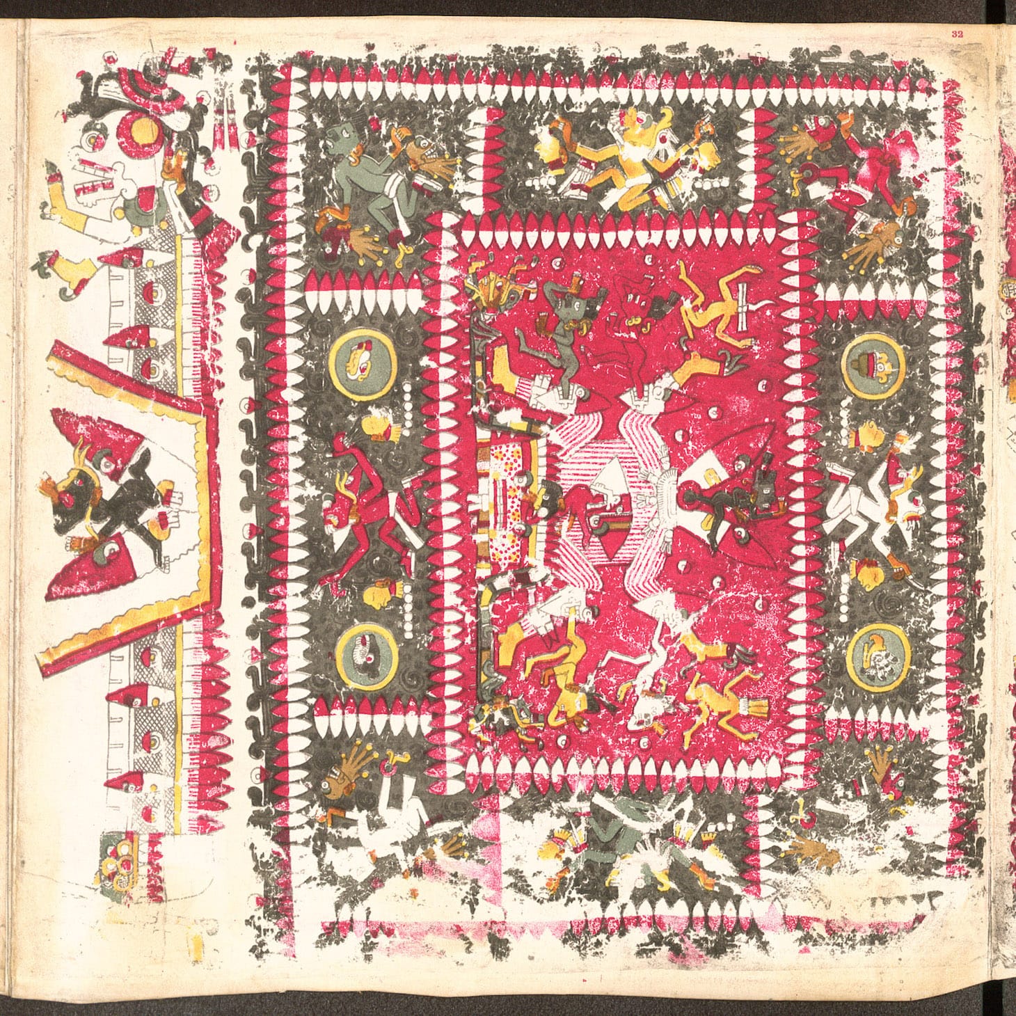 Because scholars have observed no traces of European influence, the “Codex Borgia” is thought to date from the decades immediately preceding the arrival of the Spanish, likely the late 15th or early 16th century. It was sent to Europe at some point in the early colonial period; its whereabouts remained unknown until 1805, when it was discovered among the personal effects of Cardinal Stefano Borgia in Rome — consequently acquiring its contemporary name. The manuscript was transferred to the Apostolic Library of the Vatican in the late 19th century, where it is housed today.
