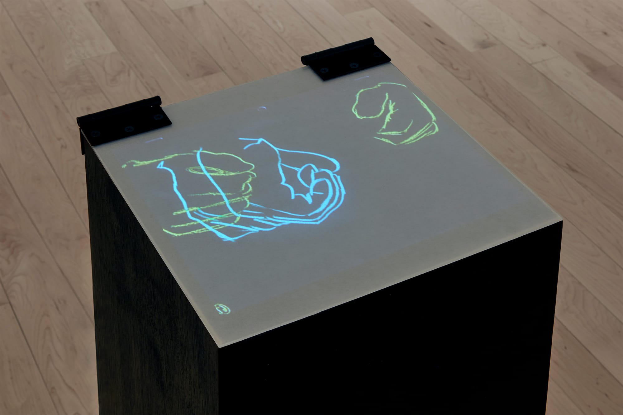In a separate campus gallery, André Comtois’s rotoscope work, “Self-Care,” animates tracings of disembodied hands as they handle invisible objects. These vignettes, sourced from YouTube videos of mundane activities (deboning a chicken, changing a car part, washing one’s hands), suggest a more menacing quality in their touch. Given the ongoing threat of viral surface transmission, Comtois’s echoes of touch magnify what we cannot hold. Like Shi’s “Han,” “Self-Care” is weighted with a sickening context. However, each of these artists anchor their practices in a minor gesture that announces something extraordinarily hopeful: the chance to contextualize their work within the mirror of their peers for the first time in this new pandemic present.
