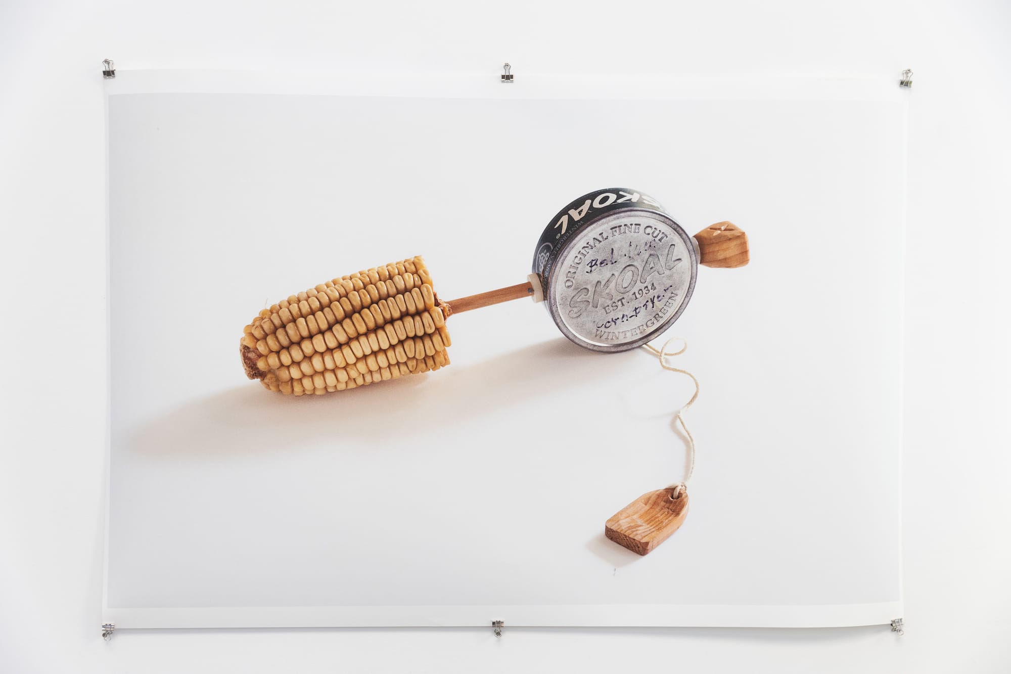 Amanda Bauer and Lois Bielefeld set their focus on the origins of their birth lines. With an archaeologist’s care, Bauer photographed her grandfather’s mysterious archive of handmade objects. Wrought with the history of her grandparents’ divorce, the two photographs on view contain an inaccessible drama: we have no clues as to why Bauer’s grandfather made and then maintained these objects. Here, these absurd little sculptures are static, but we easily imagine turning them over in our hands: flipping the closure on a wooden box or pressing dried corn kernels onto our palms.