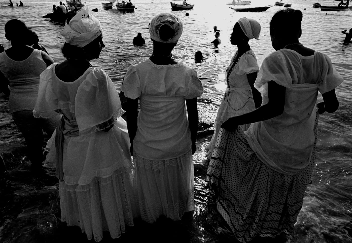 In the above photograph, Johnette Iris Stubbs captures a group of baianas, or women native to the Brazilian state of Bahia, making offerings to Iemanjá, an African deity known as the goddess of the sea. The poetic image, caught in the last moments of twilight, is one of many in Mfon, a new biannual journal that collects the work of 100 women photographers from the African diaspora. Founded by the documentary photographer Laylah Amatullah Barrayn and the visual artist Adama Delphine Fawundu, the journal hopes to “fill a void while creating a space for intellectual discourse around issues represented by women photographers of African descent.”