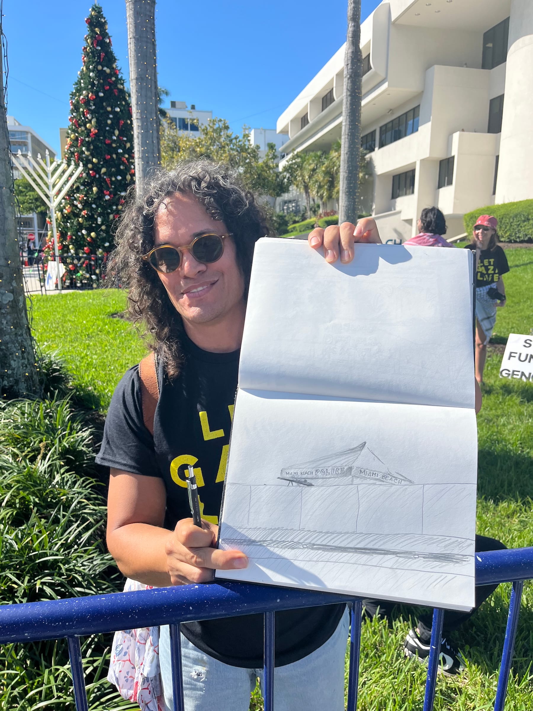 As artist Eddie Arroyo sketched the police vans at the edge of the barricade, Jewish Miami resident Amanda Rose pointed to the religious resonance of looking towards the future.