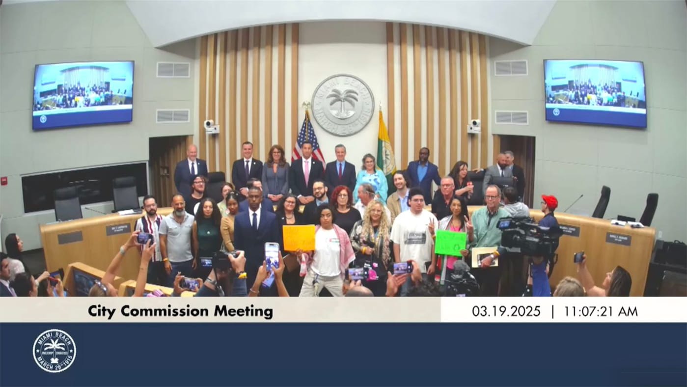 In a city commission meeting this morning, March 19, following a heated public comment session, Miami Beach Mayor Steven Meiner withdrew his controversial proposal to defund and evict an independent nonprofit movie theater that refused to cancel screenings of the Oscar-winning documentary No Other Land (2024).