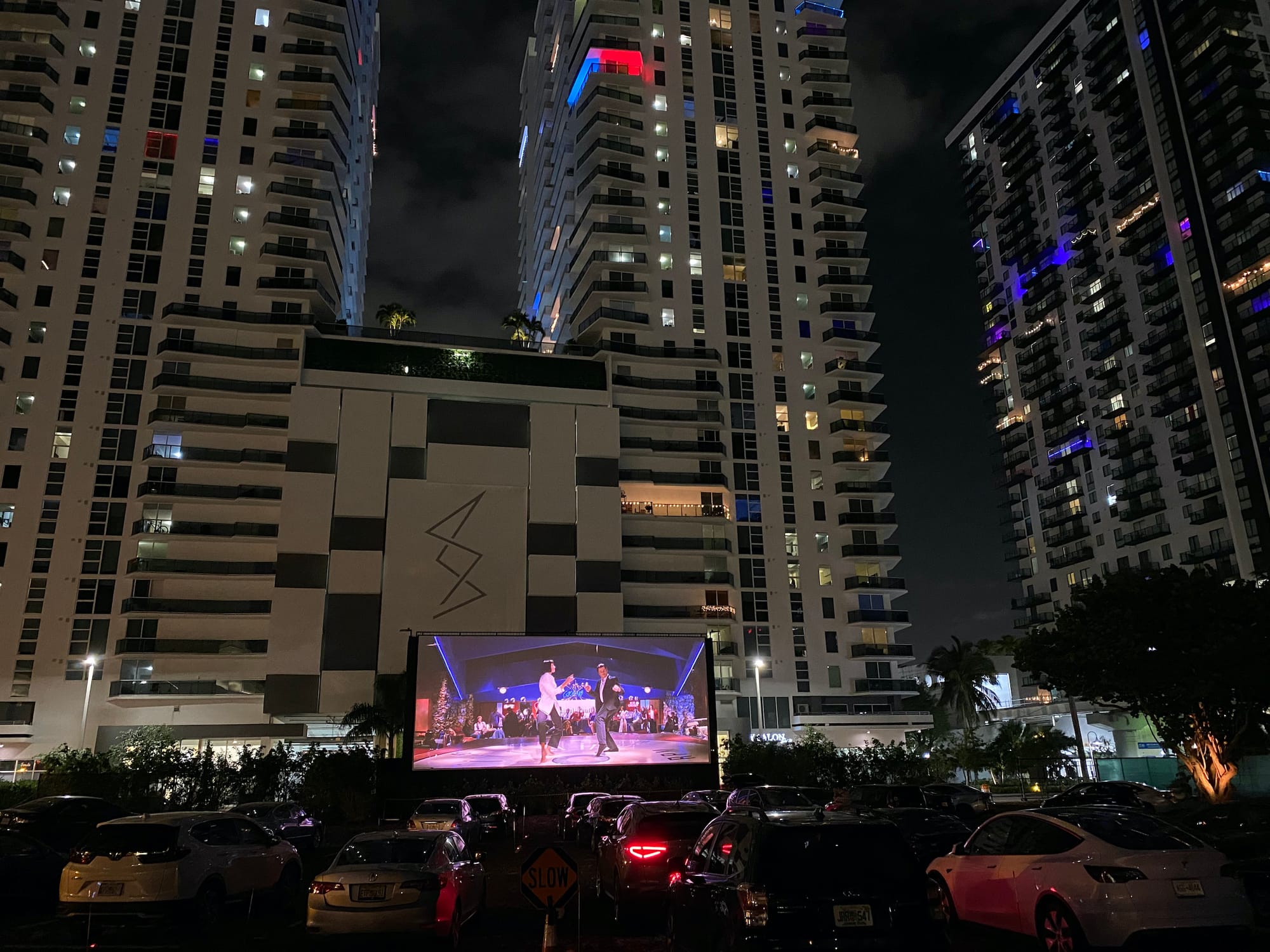 Decades before movie theaters and cinemas were threatened with extinction, their open-air cousins, the drive-ins, fared a similar fate. The risk didn’t deter local 35mm aficionado Nayib Estefan from opening Nite Owl Drive-In with a 53-foot outdoor screen and 4K DCP projector in downtown Miami in the middle of a pandemic. Night after night Estefan sold out with the unlikeliest of screenings, movies like 10 Things I Hate About You (1999) and Jennifer’s Body (2009).