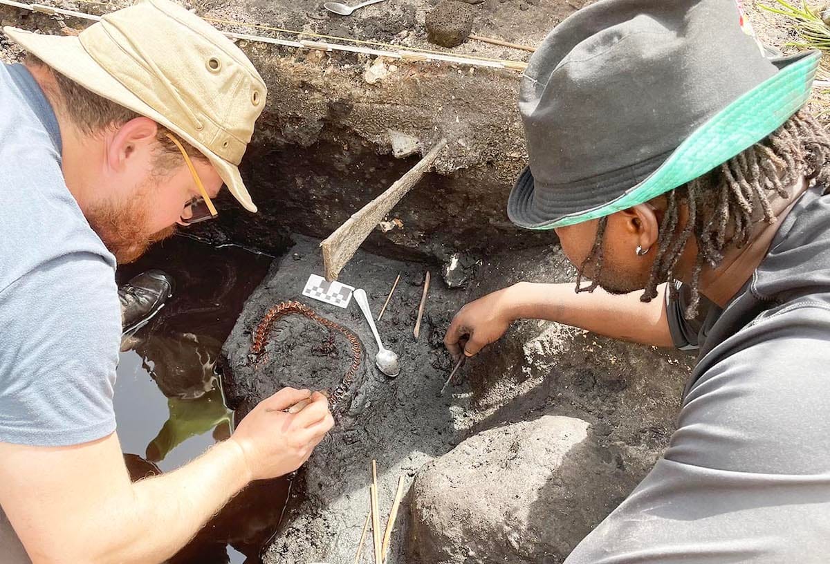 The approximately 100 archaeologists who have been excavating the area for the past two years continue to unearth tools and ornaments made from animal bones and shells, cultural objects, and artifacts pointing to a thriving trade network. They also found fragments of human remains under the ground, which were reburied elsewhere in consultation with Seminole tribal leaders. Bob Carr, the county’s archaeologist, shared new findings such as “shell eyelids,” discs of shells representing eye pupils.