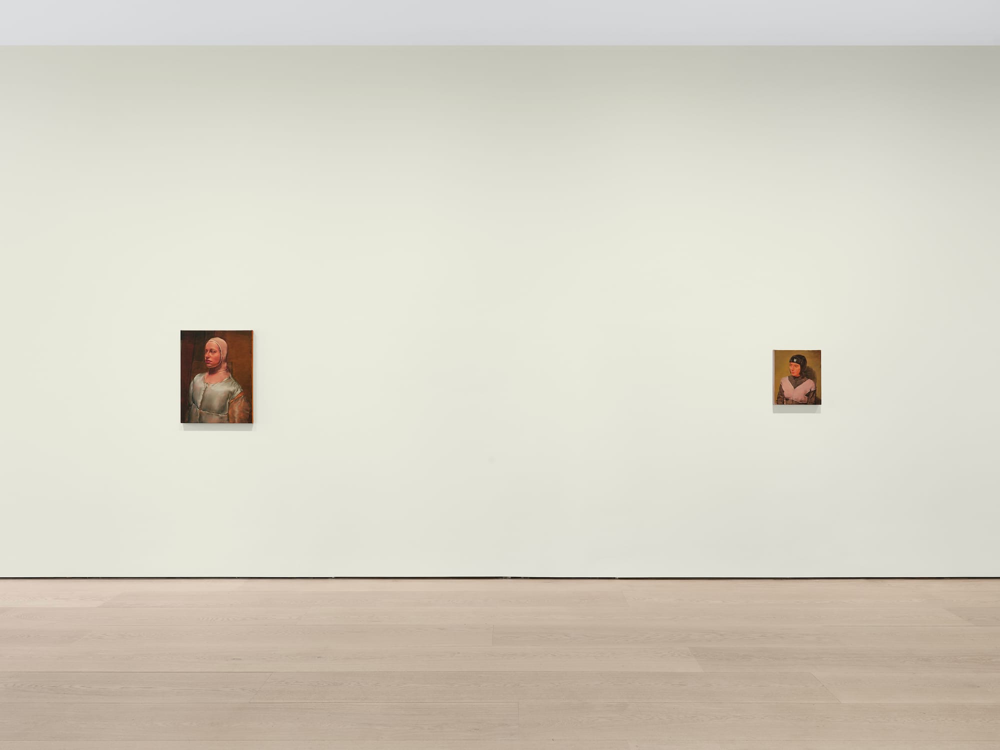At the artist's current show in London, a different painting by van Eyck, his great portrait of the Arnolfini family in the city’s National Gallery, is a suggestive antecedent. That 15th-century portrait is an extraordinarily solemn, even gloom-struck affair. It has no skittish, Mozartian lightness. The costuming, though magnificent, weighs like lead. This couple is not accustomed to skipping toward the matrimonial bed.