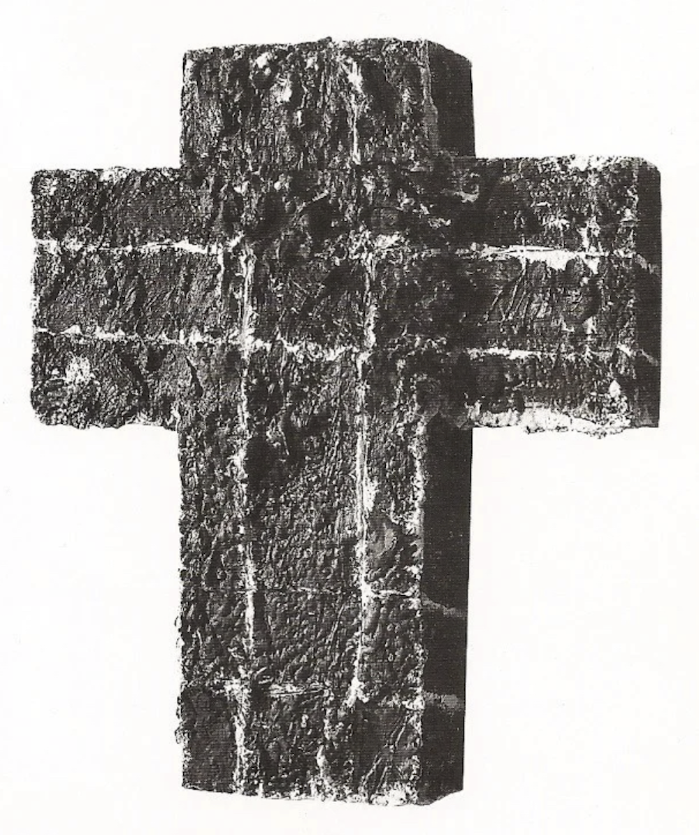 Looking back at his early work, David’s use of encaustic on object-like structures, including “Berlin Gothic” (1981), a black cross encrusted with pigment and encaustic on wood, speaks to his interest in visceral materials, symbols, and loaded subject matter. Despite the disruptions, this fascination has remained strong. As we sat in his studio, surrounded by artwork composed of materials such as mirrored glass, silicone, wax, acrylic, and resin, I asked him how he achieved the patterns in the broken glass. He told he drew with a hammer, using different parts including the claw and handle, to score lines and crack the glass. His process of destroying mirrored surfaces to generate different patterns, as in “Untitled 9” (2022–25), brings to mind the poet William Butler Yeats’s lines from “Easter 1916”: “All changed, changed utterly/A terrible beauty is born.”