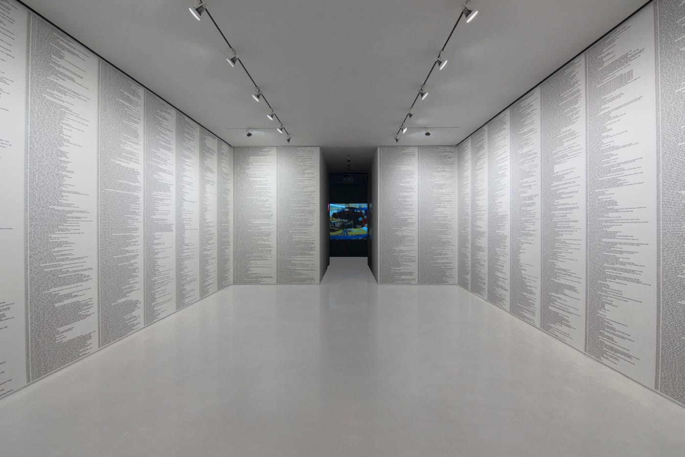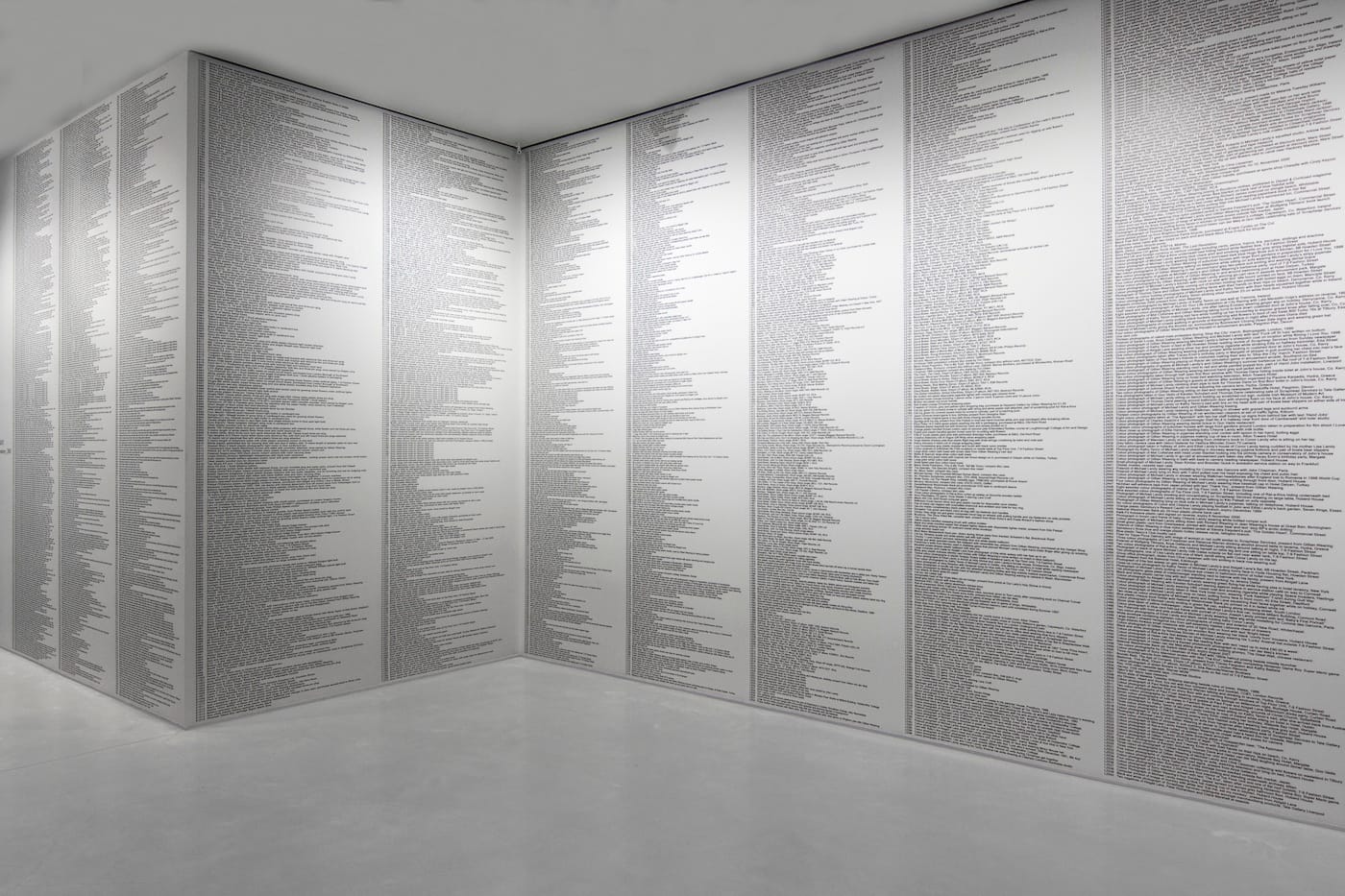 There is an empty room on the top floor of Sperone Westwater Gallery — empty except for columns of words and numbers running up and down the walls. The columns make up an inventory of every single possession belonging to the artist Michael Landy, which he systematically destroyed over the course of two weeks in 2001, more than 7,000 items in all.