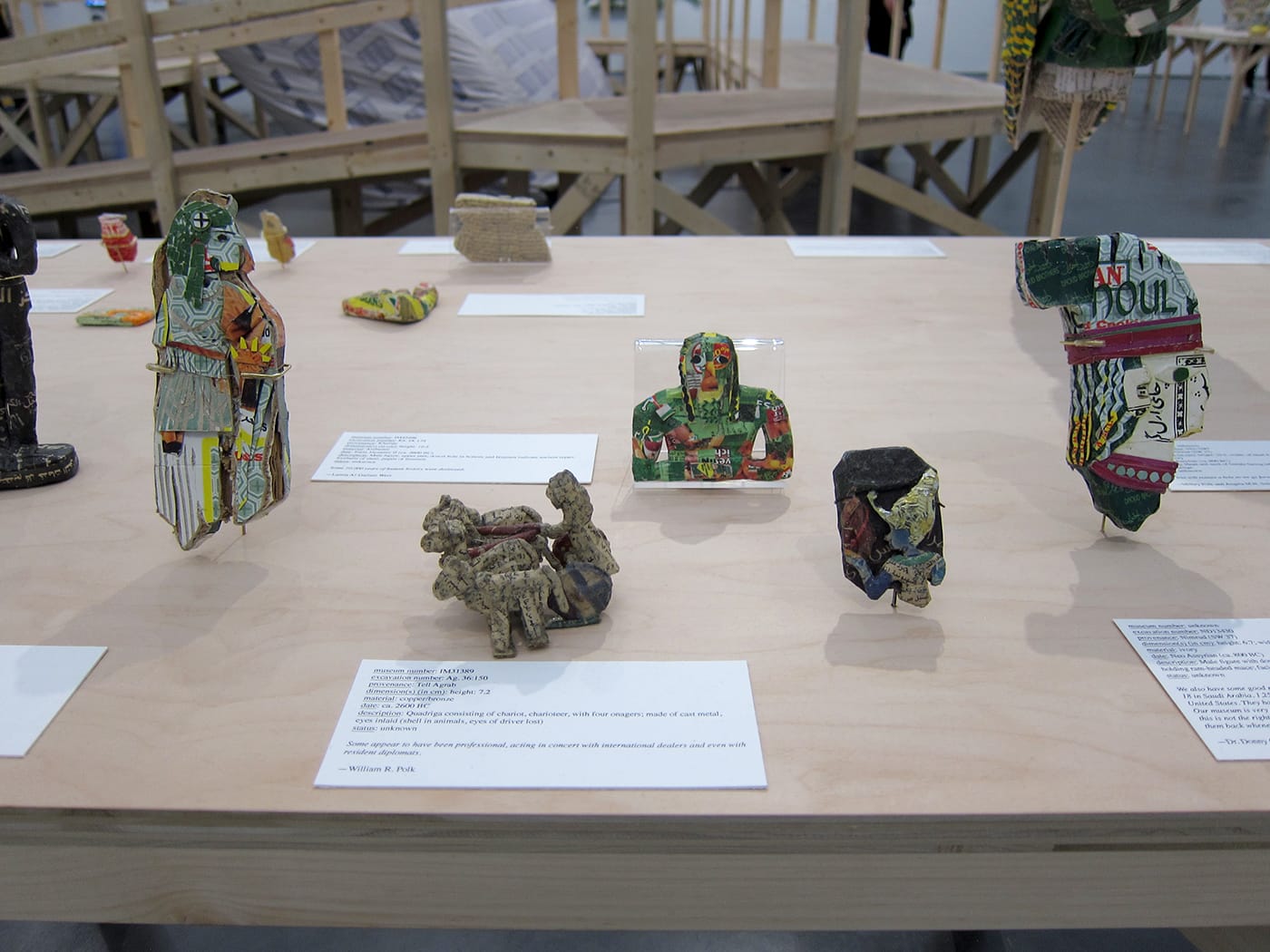 Rakowitz expresses a similar earnestness in his practice to keep certain truths from disappearing from our collective memory. Gathered now for the first time in one room and arranged so their boundaries are murky, his works activate a space for us to question, contest, and discuss cultural histories. He asserts that the problems he presents, though seemingly distant, are not local and contained, but human ones.