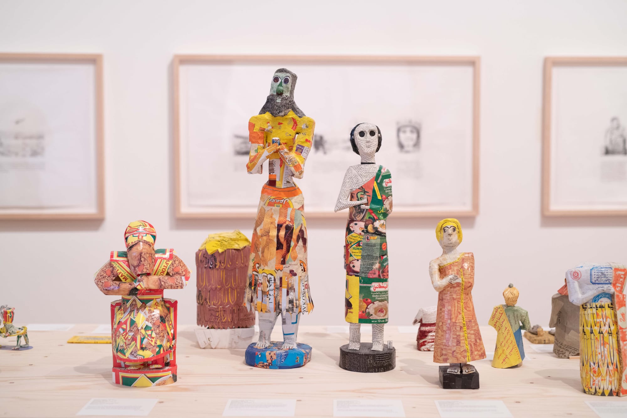 LONDON — Following Baghdad’s fall to US troops in 2003, more than 15,000 artifacts were looted from the National Museum of Iraq by thieves. The presence of ISIS went on to facilitate further destruction of ancient culture in the country, yet looting and pillaging in Iraq is nothing new. Western archaeologists have been laying their claim over its heritage for centuries to allow Iraqi history to be displayed in Western museums, taken through colonial means. American-Iraqi artist Michael Rakowitz has been working to reconstruct these “(g)hosts” of the past since 2007, mostly using food packaging from Iraq to create sculptures, one of which — the Lamassu, a winged deity guarding the gate of Nineveh destroyed by Daesh in 2015 — has been on display in London’s Fourth Plinth since March 2018. And now, a full display of this project is on view as part of his career retrospective at Whitechapel Gallery, which looks not only to the specters haunting Iraq, but the whole world.