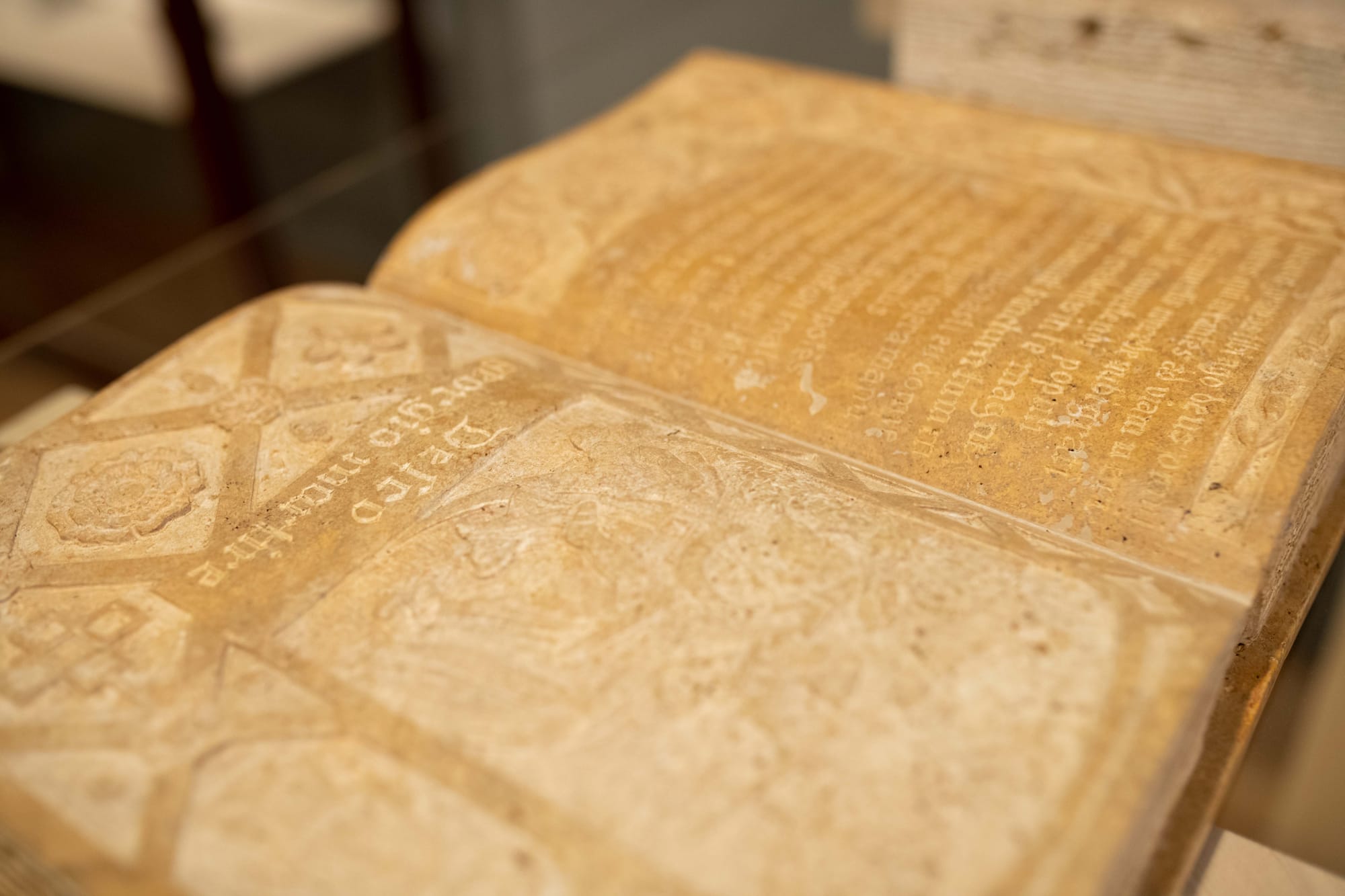 Additional references to the destruction of historical monuments are seen in “What Dust Will Rise” (2012), which was originally made for the Documenta festival of the same year, in Kassel, Germany. The work comprises recreations of Talmudic books that were destroyed by the accidental bombing of Kassel’s Fridericianum Library by the RAF in 1941 (they were already at risk of being burnt by the Nazis). Here Rakowitz introduces ghosts of different times and cultures to one another. His 2012 books were made in the stone-carving tradition of Afghan Hazari craftsmen with stone quarried from the Bamiyan Valley, where the Taliban destroyed Buddha statues in 2001.