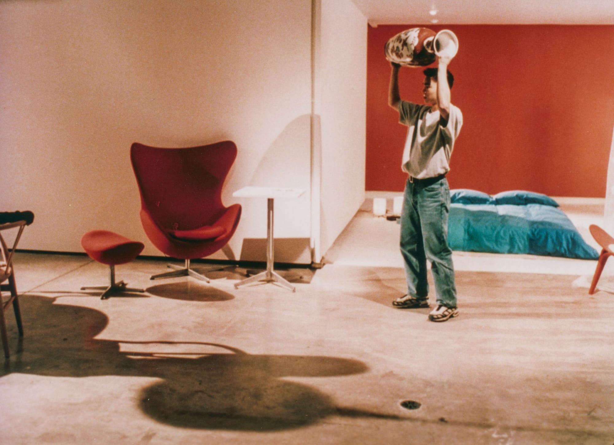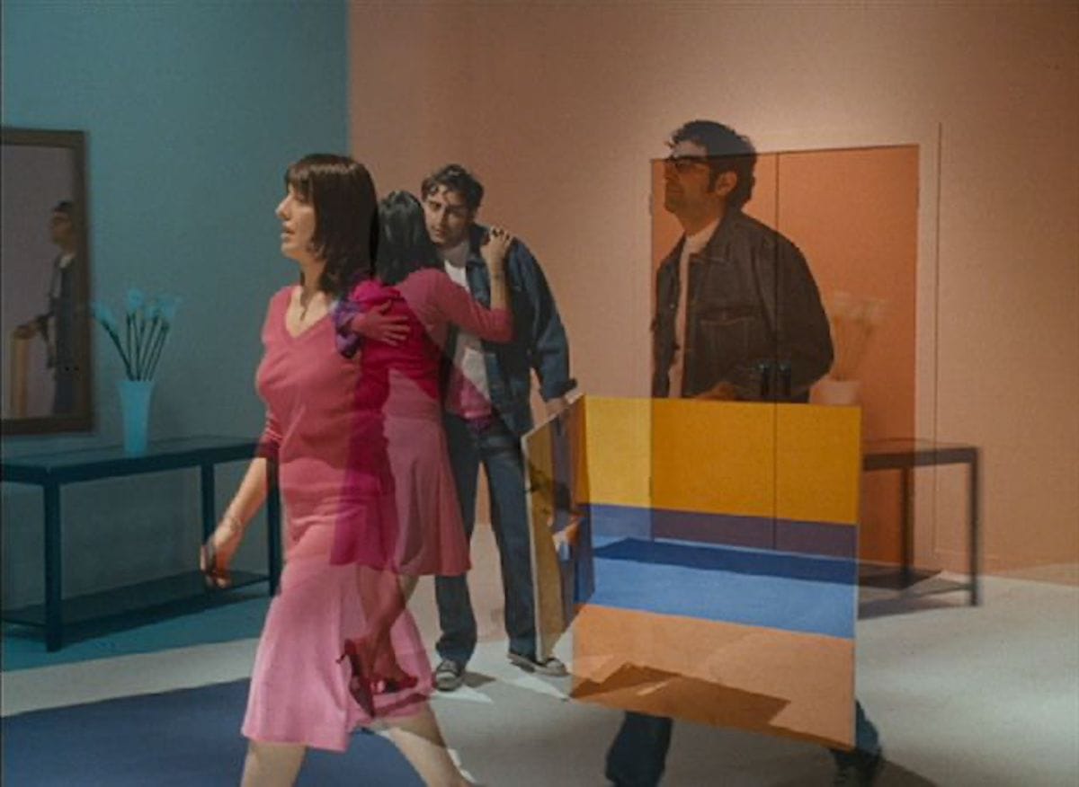 Even the title of 2005's SSHTOORRTY (the words “short” and “story” merged) makes an audience work to untangle it, preparing them to do the same with the narrative. The film is split into two parts which play simultaneously, with the images, sound, and subtitles (the characters speak in Farsi) all layered over one another. Each part tells half a story about a painter, his client, and the client’s wife, who is having an affair with the painter. The scene is just a few minutes long, but it repeats several times. The viewer can focus first on one half and then the other, then use the next few iterations to put together the narrative pieces. Or perhaps you’ll start with character details, watching the woman’s face as her husband announces what he knows, then use later loops to ascertain exactly what the living room looks like and the true color of the various walls, or to determine what happens to the wrapping of the painting that is tossed aside and seems to vanish (all of this is surprisingly tough, given the superimpositions). Here the viewer is tasked not only with contemplation, but also with participation.