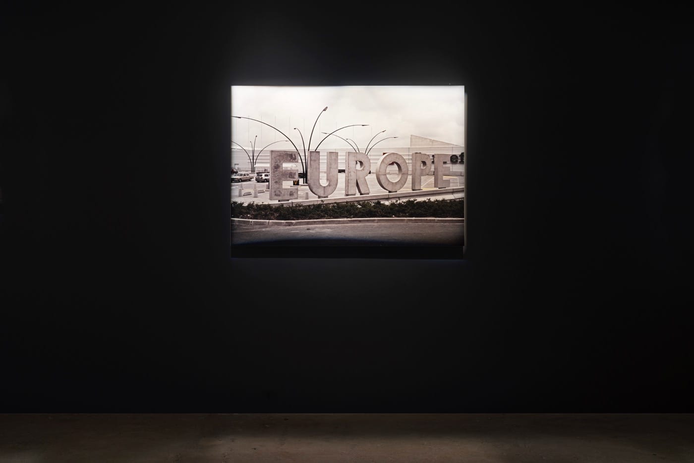 Unlike his novels, where his characters embody the despicable aspects of the human mind, his photographs represent the space in which the decrepitude is formed. Here, Europe has already rotted, and he is just a bystander, a tourist in his own world. Houellebecq is powerless as he witnesses the collapse of modern-day society. Trees grow higher and leaves cover the stores, the streets, and eventually human graves, which, for him, is the ultimate rezoning. Houellebecq summarizes his critique of cultural and political ideals in a photograph of a collapsing concrete sculpture in the shape of the word “EUROPE” right in front of a brightly lit supermarket chain. “When asked what he thought of the state of the Europe,” says Fischman, “Houellebecq didactically pointed at the photograph.”
