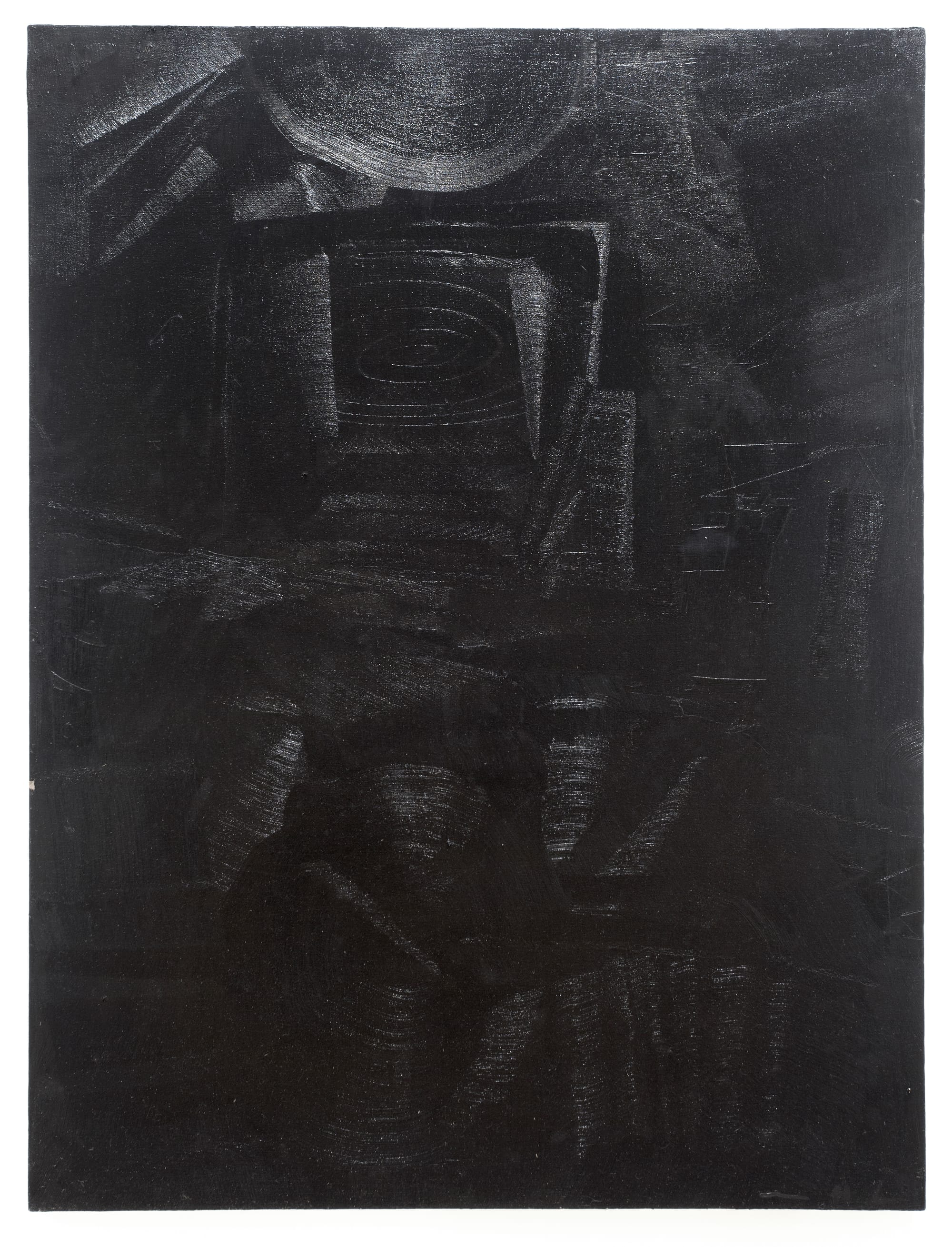 Henderson started his black paintings after instructing his students at University of California, Davis (where he taught for more than 40 years, alongside Wayne Thiebaud, Roy De Forest, and William T. Wiley) to look anew at the black and white tones they saw in life.
