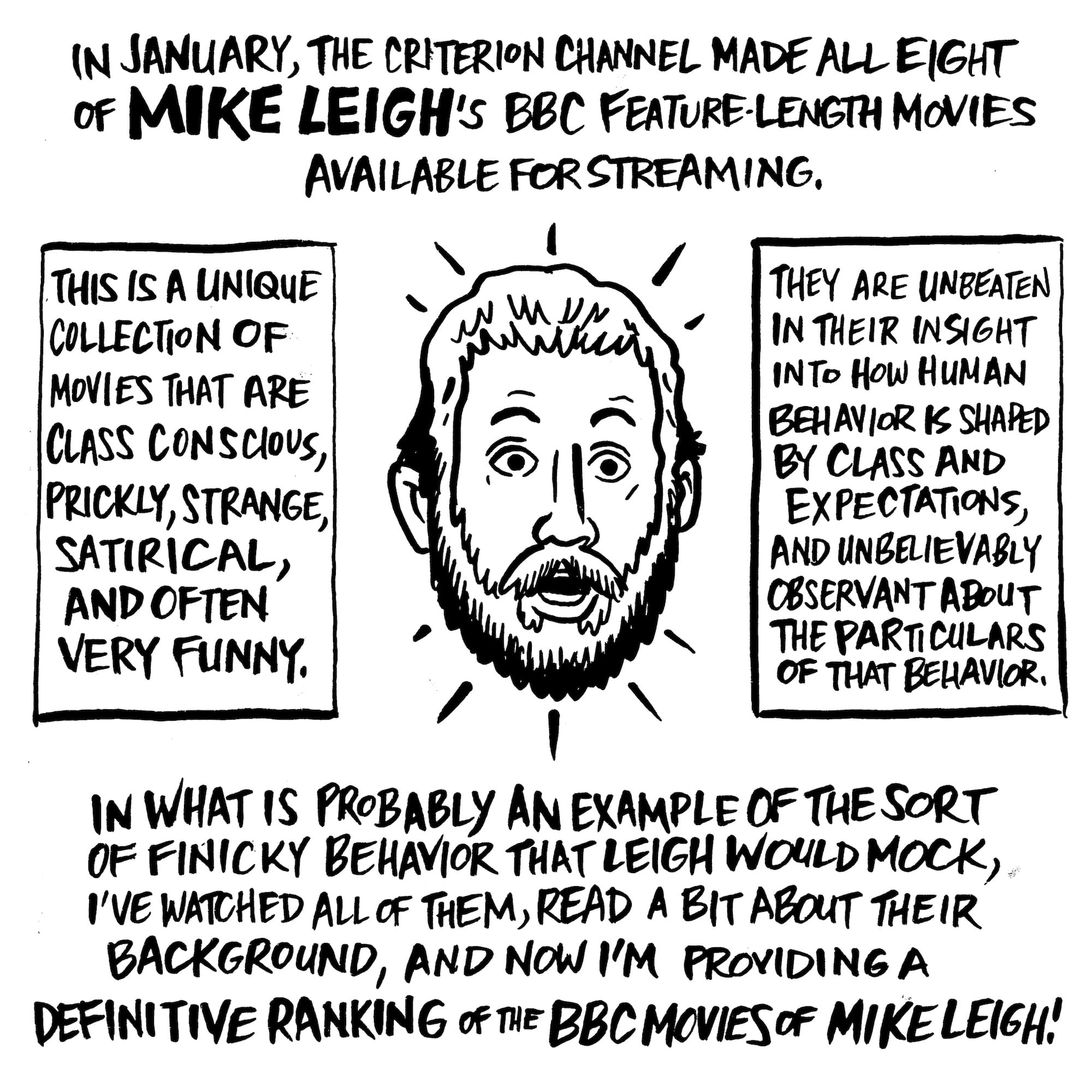 Leigh's films are class-conscious, prickly, strange, satirical, and often very funny.
