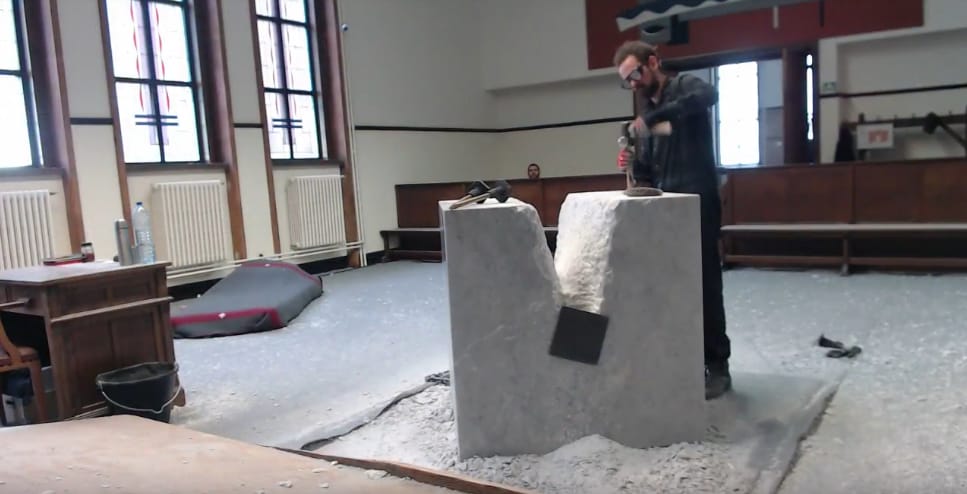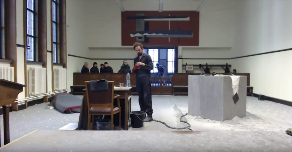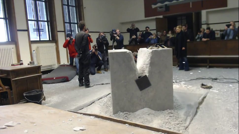 According to The Telegraph, Poppe had initially thought that breaking up the marble would require 10 days at the most, then realized he had “underestimated the marble.” The decision to cut the chain was reportedly made after the exhibition’s curator spoke with the courthouse. The entire performance, including its unexpected ending, was livestreamed on YouTube.