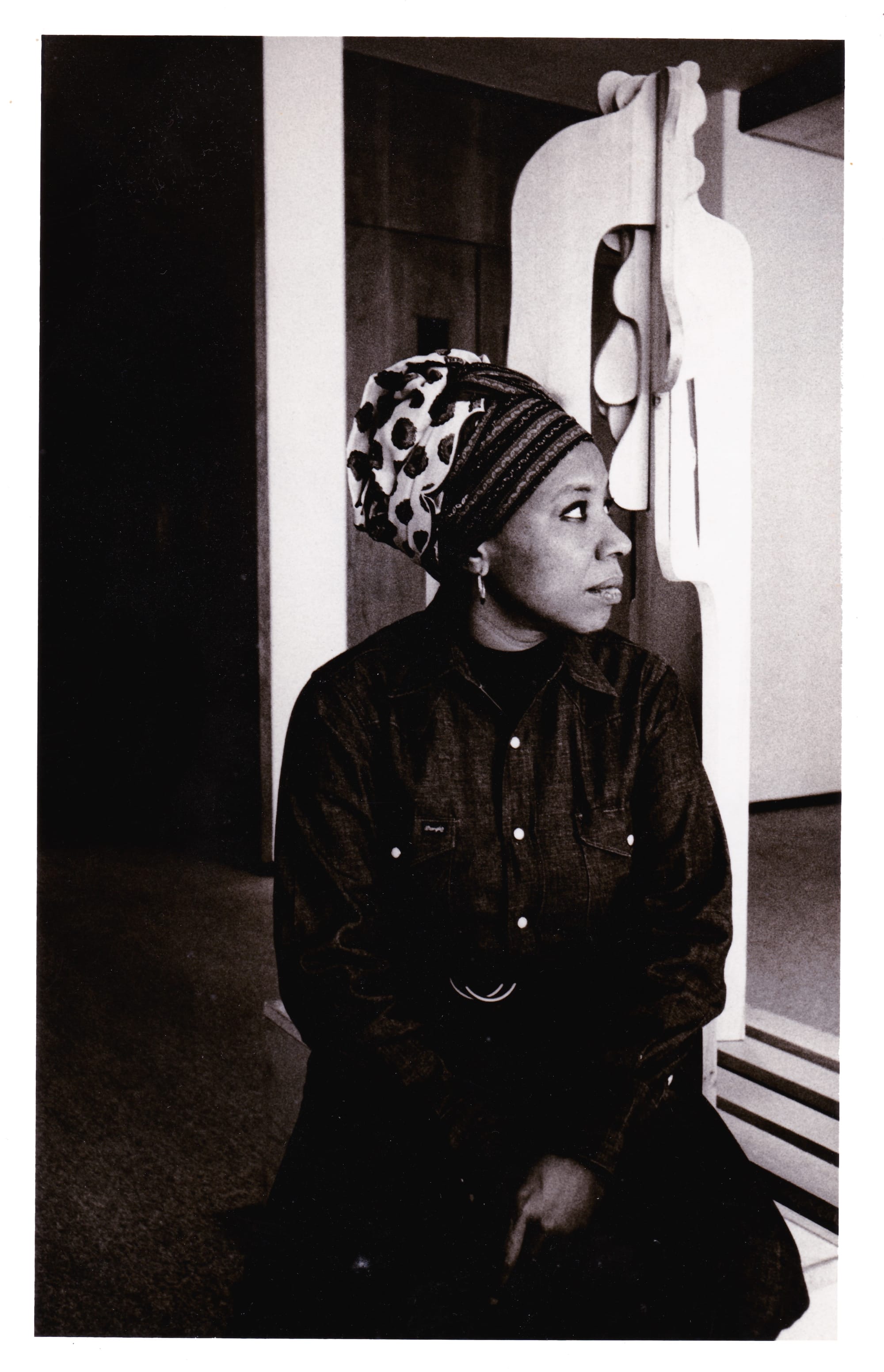 The architectural silkscreens and sculptural wooden assemblages share Thompson’s cosmological vision — her intimate focus on the patterns, colors, and shapes of her environmental, musical, and political surroundings. It remains rather ironic that an artist who was so in tune with the flows of the universe and patterns of nature, posed such a fundamental challenge to mainstream art histories. Such universalist searches for the cosmos are often reserved for white male artists. Even when participating in pan-Africanist exhibitions such as the landmark FESTAC’77 and later on the 1991 Dak’Art Biennial, her work remained illegible to other Black creatives, including her former romantic partner, Audre Lorde, whom she grew closer to after meeting in Nigeria. Lorde questioned the coherence between a Black lesbian feminist political agenda and Thompson’s abstractionist formal practices.