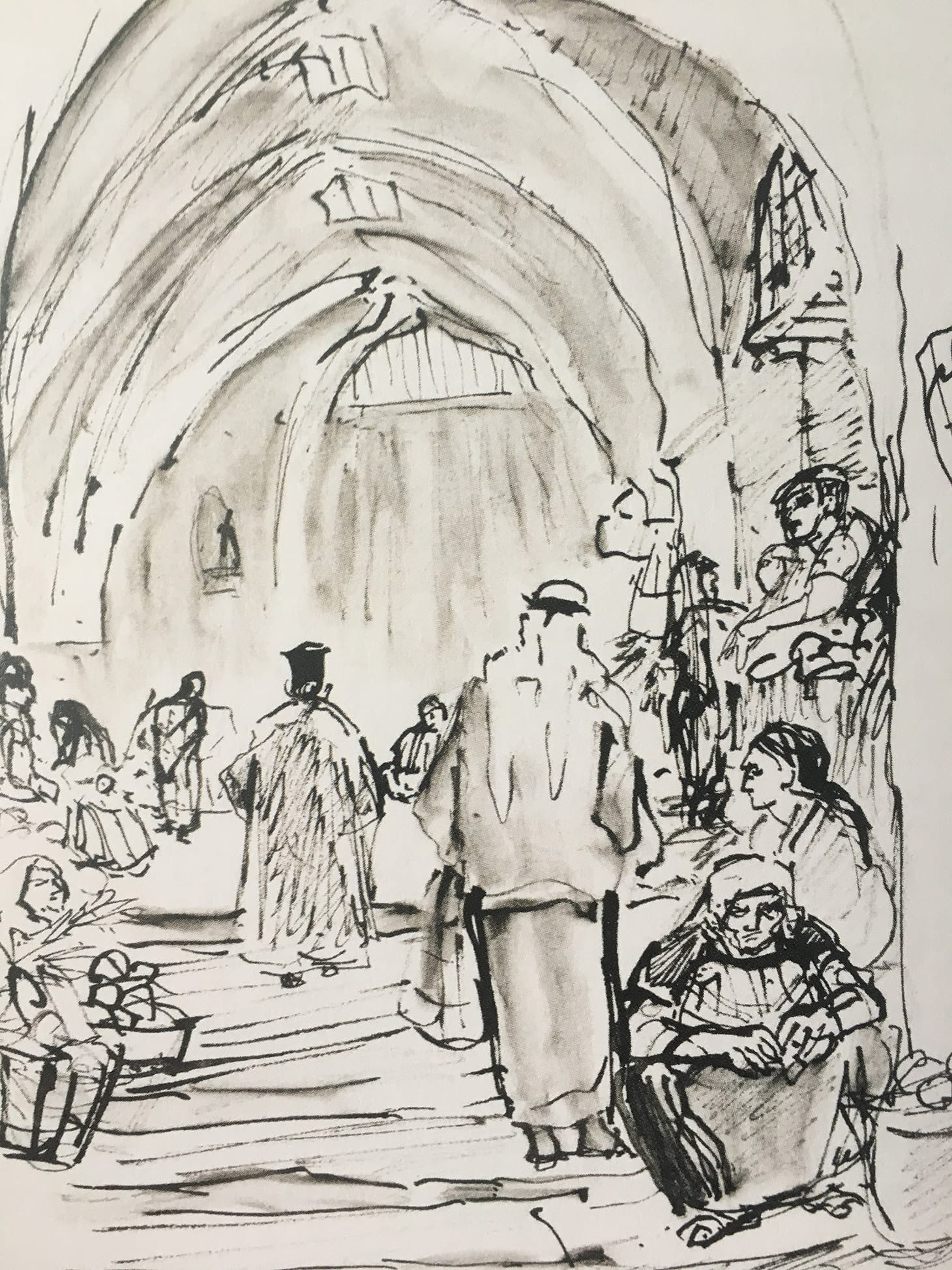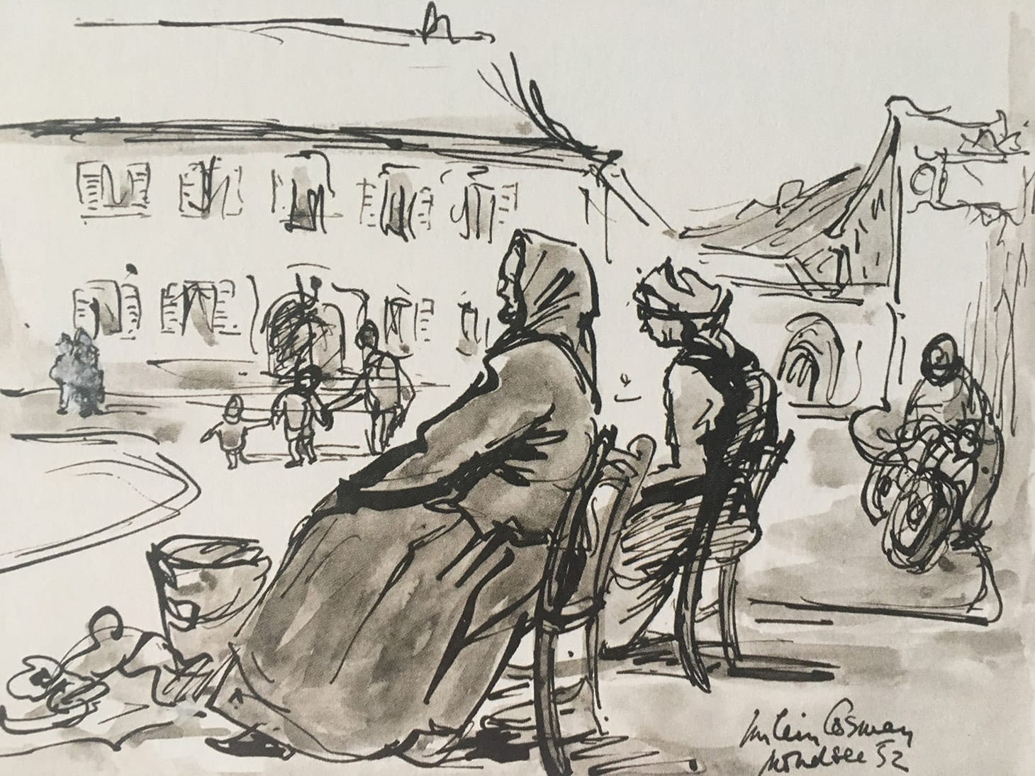 Although Cosman primarily focused on the human face and figure, in later life she took formative trips to Europe and the Middle East and was inspired to create scenes of urban life. Particularly striking are her drawings of markets places, whether a bustling souk in Jerusalem’s Old City or a makeshift market stall in a sleepy Austrian town. Immune to trends and fashions, Cosman always remained true to figuration at a time when most prominent artists were experimenting with abstraction.