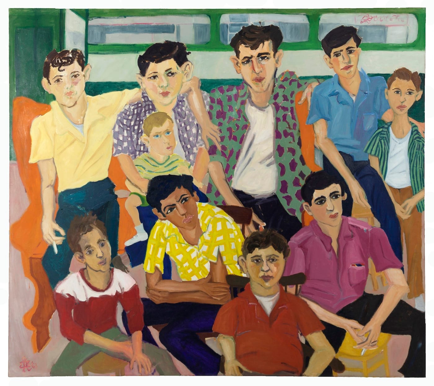 The other thing I want to stress is that these thoughts came to me before I had seen even half of the work in the exhibition. That’s indicative of how much Gross’s paintings and crayon drawings — done while she was living in New York — gave me to think about, reflect upon, and delight in. Along with the work I have already described, there are two group portraits — “Grand Street Boys” and “Grand Street Girls” (both 1963) — that are as ambitious and accomplished as any group portrait done in New York at the time. What also becomes apparent is that Gross never developed a cool, signature style — as did many figurative artists from an older generation (Fairfield Porter, Alex Katz and Philip Pearlstein come to mind).