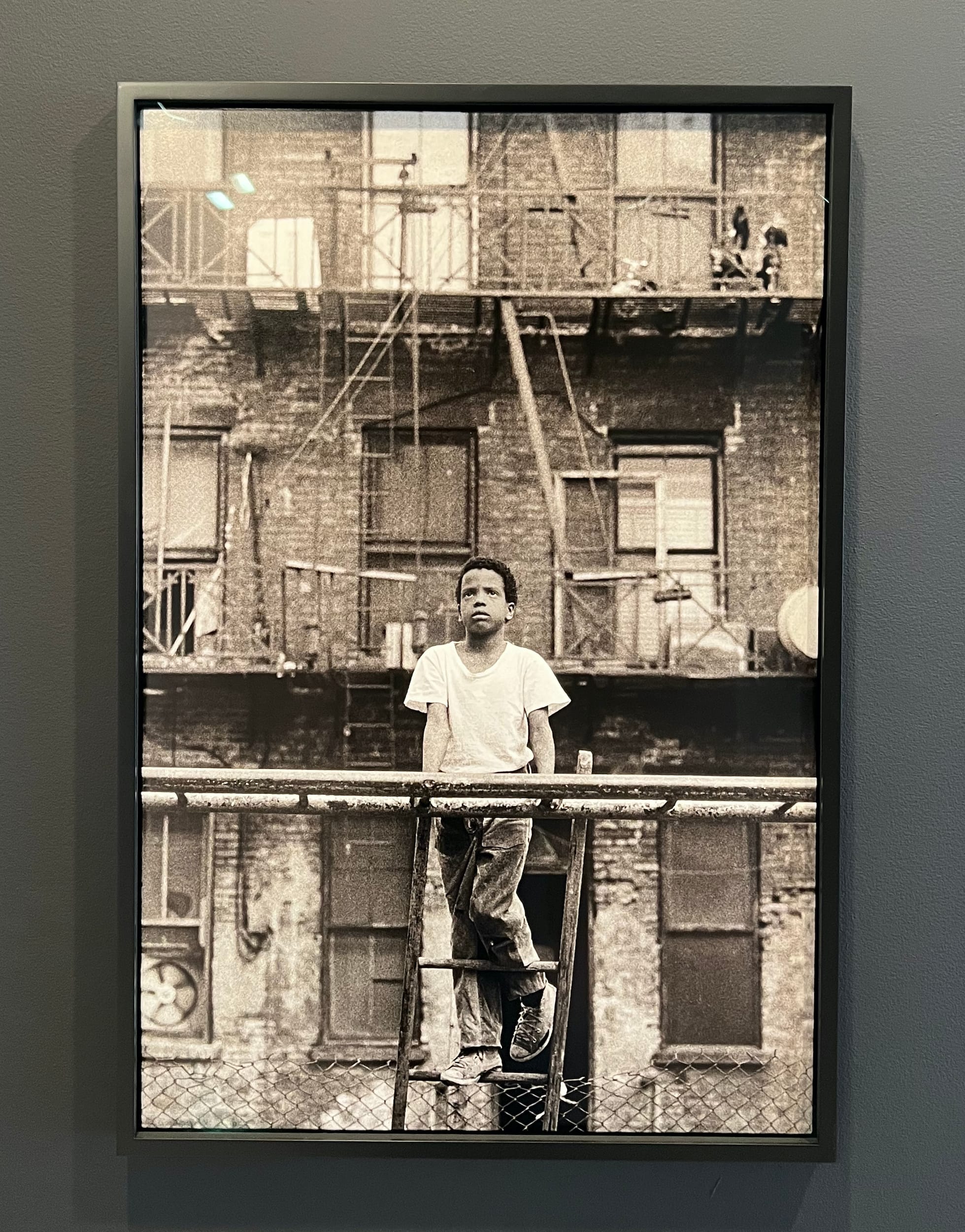 Examples from the early 1970s, which are more akin to documentary photography, pack less of a punch. The abstruse and eerie beauty in Smith’s later photos is hard to locate in works like “Harlem Boy (Harlem, NY)” (1972), for example, an image that is more readily romanticized: a young boy standing at the top of a ladder stares boldly upward. It is a portrait that can be mapped onto a narrative of Black aspiration and dreaming — and I won’t deny its power in this respect. I also can’t deny feeling like I’ve seen it before. But this only makes the radical experimentation of Smith’s later work land with even more force: from Smith’s art, we glean a picture of an artist transformed by risk, by a willingness to wander toward obscurity.