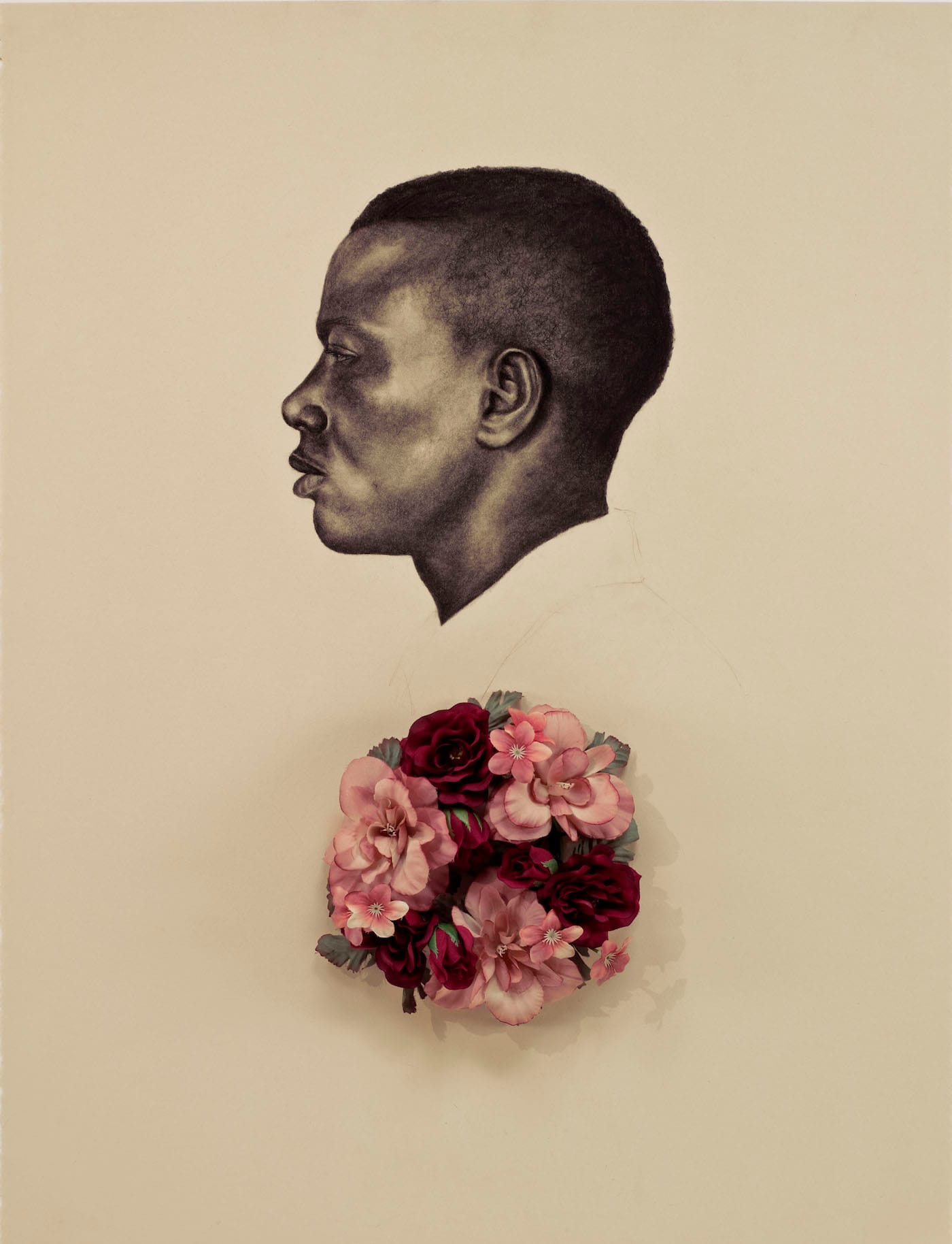 WASHINGTON, DC — For decades, the Bronx-born artist Whitfield Lovell has focused on painstakingly recreating, through drawing, found photo portraits of African Americans. Since 2008, he has been building on a series of Conté crayon drawings on paper, each dedicated to a single individual’s face. Titled Kin, the collection reinterprets photographs originally taken for passports, ID cards, or mugshots, and pairs each sketch with a found object, from a stuffed crow to a floral wreath. Through these unexpected, mixed media juxtapositions, Lovell presents the foundations for us to construct new histories for these strangers, inviting us to consider what informs our understanding of others.