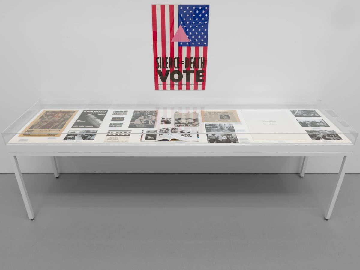 The majority of these materials were sourced from Avram Finkelstein’s archive, one of the original founders of the Silence=Death collective and Gran Fury, who has also curated the magnificent exhibition OMNISCIENT that opened at the Leslie Lohman Museum last week. Tellingly, this is also the only part of More Life that includes lesbians, featuring photographs by Lola Flash and Donna Binder, as well as a stack of the signature “If they were still alive today…” posters by fierce pussy, a lesbian activist artist collective formed in 1991, committed to advocating for lesbian visibility during the epidemic.