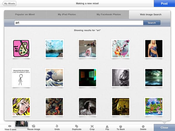 The brainchild of Scott Ostler, co-founder of the image-sharing site Dump.fm, and Khoi Vinh, a former design director of NYTimes.com, Mixel is a free iPad app that may just be a game changer in the world of online images. Sure, we've heard it all before, another service that promises to change it al