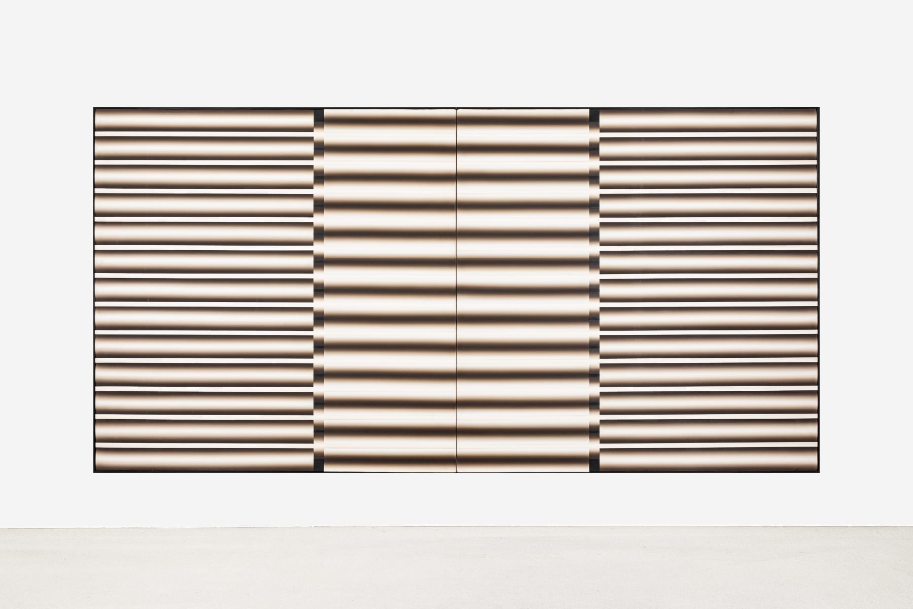 The title of the exhibition, Advancing Columns, is an homage to an interview with the artist in which he mentions a railway journey in 1982, focusing on the moment when the landscape outside the train car’s window transforms in the mind’s eye as a result of changes in speed and light conditions. To Lee, that was the sensitization of speed, orienting toward the future.