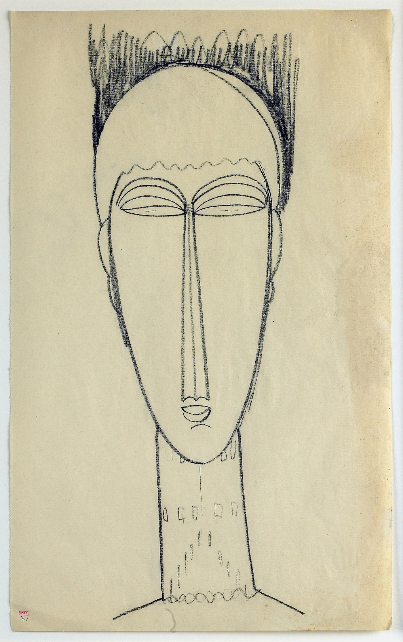 But to start at the beginning, Modigliani: Unmasked is unusual for two reasons: it showcases the artist’s achievements as a sculptor and draftsman while relegating his lushly colored paintings to the sidelines; and it is assembled mostly from a single collection, that of Paul Alexandre, who bought more than 400 drawings directly from the artist’s studio between the years 1906 and 1914.