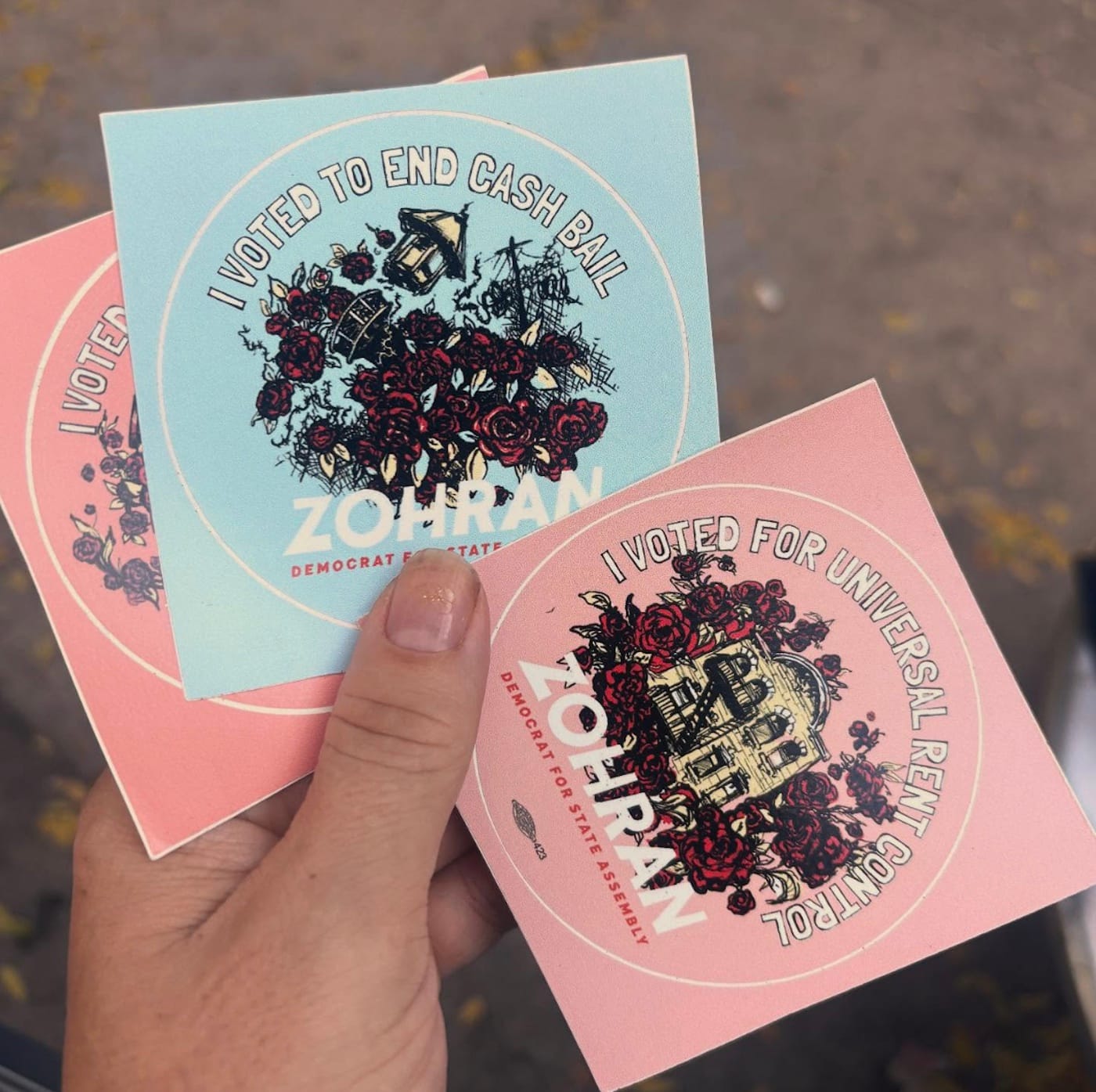 MC: He's a DSA comrade. He has been a ground-level DSA organizer for so long. He was involved in our first electoral campaign that I remember, which was the campaign for Khader El-Yateem in Bay Ridge, a Palestinian Lutheran priest who was running. Because I am an active DSA member, when he became one of a block of people who were running for state senate and assembly, I volunteered to do artwork. I did stickers for his campaign.