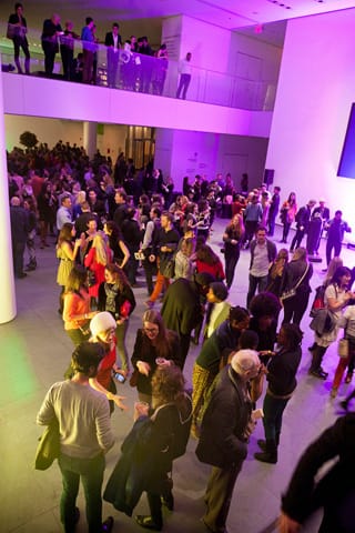 The result was entertaining, although also a bit much. At first I lingered with friends amid the throng of beautiful people in the lobby, drinking beer and listening to a DJ set by Cory Arcangel’s music group, Title TK. Between the flock of blonde, stockbroker-looking dudes, the colored neon lights, and the music, I felt mildly like I was in the Meatpacking district. If it weren’t for the incredible surroundings, I probably would have turned back.