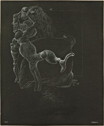 Speaking of sexuality, nobody really does slightly unnerving female bodies with impossible intricacy quite like Hans Bellmer, whose two pieces in the show are spectacular. Stuck studying this drawing longer than I spent in Print/Out, which is another MoMA exhibition currently on view, I was lost in Bellmer’s beautiful, almost three-dimensional rendering of one of his self-made dolls. Like most of the show, Bellmer’s drawing skews a bit dark with his fraught lines and exaggerated forms and yet, in its distortion, it portrays a real palpable emotion to the viewer.