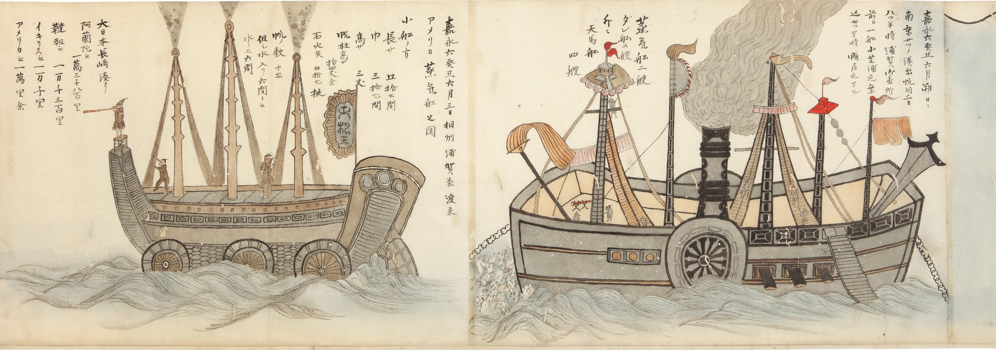 The Huntington Library, Art Museum, and Botanical Gardens in San Marino, California acquired the Walking Purchase archive. The 75 colonial-age documents refer to a 1757 investigation into a historic land swindle executed 20 years prior, when Thomas Penn defrauded the Lenni Lenape people, or Delawares, out of a massive tract of land by rigging a walking competition. The Huntington also acquired the Black Ship Scrolls, three handscrolls which document, from a Japanese perspective, Commodore Matthew C. Perry’s expeditions to Japan in 1853 and 1854; a photo album of the Kentucky State Guard at Camp Boone in 1860; and the archive of author Jeanette G. W. Kelsey, including a 435-page illustrated manuscript memoir of her relationship with author Julia Clara Pitt Byrne.