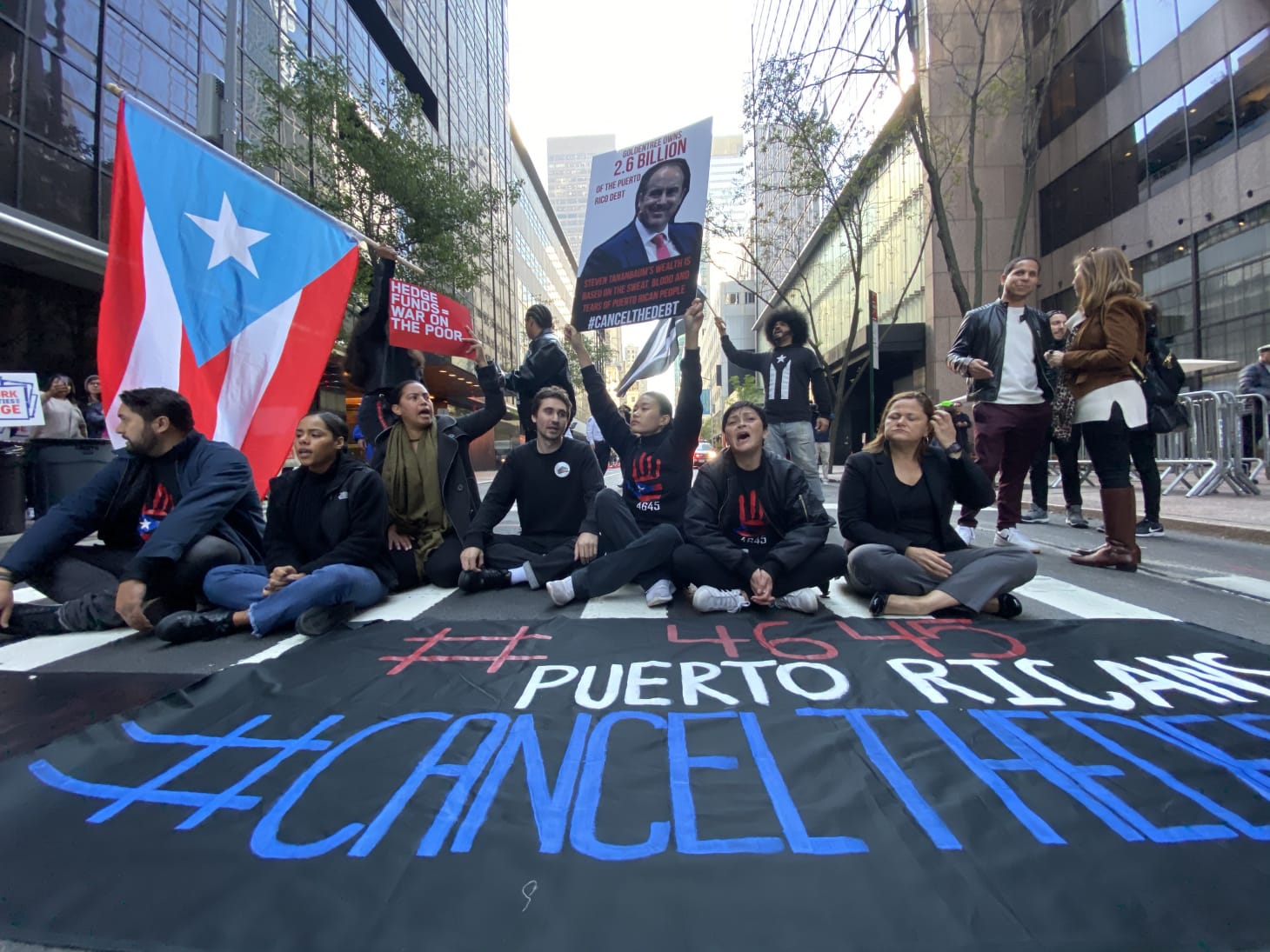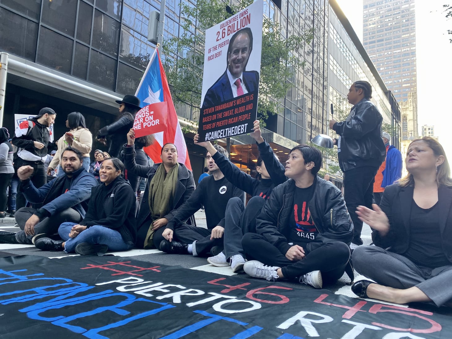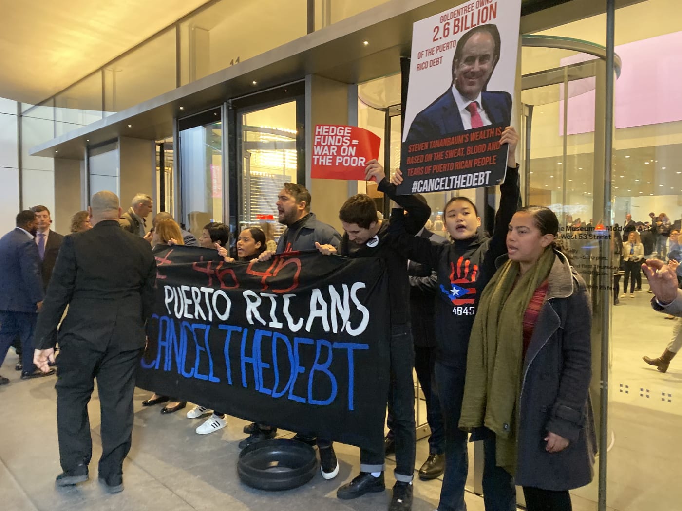 The protestors blocked the entrance to the museum and interrupted traffic on 53rd Street to demand the removal of MoMA trustee Steven Tananbaum, a hedge fund manager accused of profiting from Puerto Rico's debt crisis.