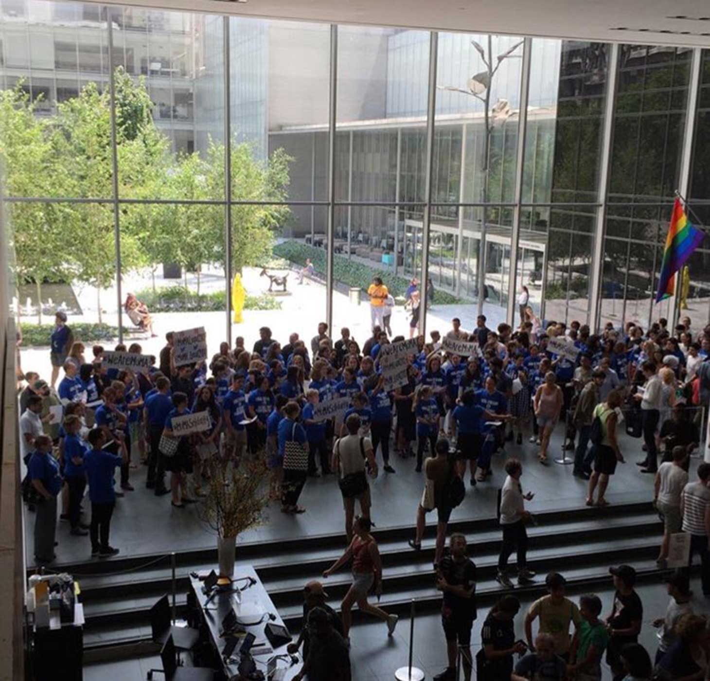 MoMA workers gathering in the museum lobby to chant and sing Solidarity Forever! #WeAreMoMA #MoMALocal2110 pic.twitter.com/iQ5G8XpSui