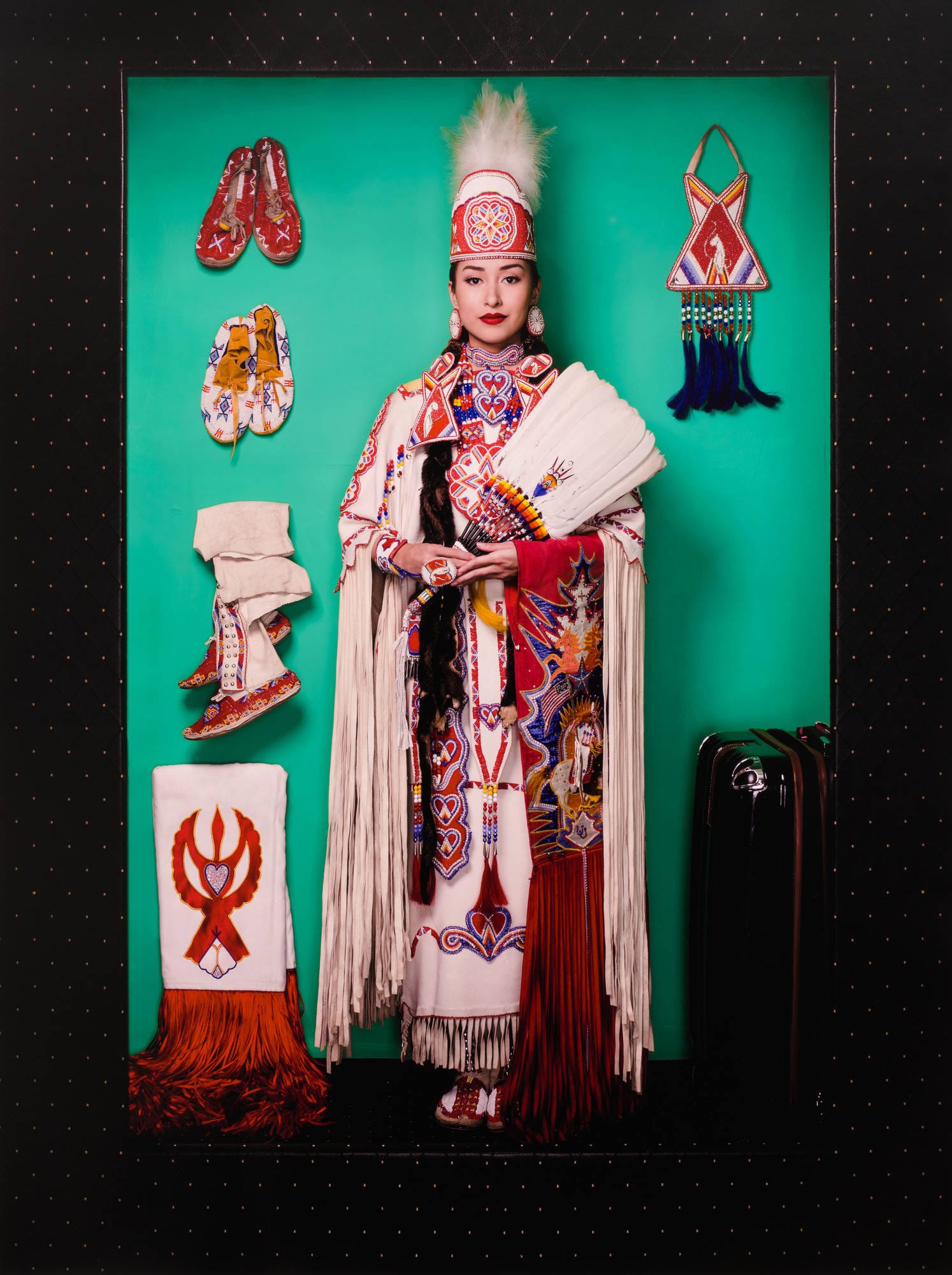 For some of the artists, like Cara Romero, a recent recipient of NDN Collective's Radical Imagination Grant, it is the first time that their work has entered MoMA's collection. Romero's inkjet print "Wakeah" (2018) comes from the Chemehuevi photographer's First American Girl series, a group of colorful, stylized portraits of Indigenous women made to resemble dolls in boxes, challenging stereotypical representations and emphasizing their self-possession.