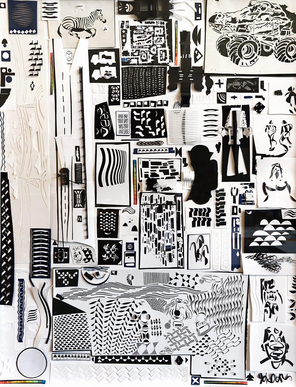 Feibelman cites navigating the world with his two young daughters as a major inspiration for these “paper journals” that try to answer their questions of how things work. “My daughter asked me if they designed cars flat, or dimensionally, and I didn’t know,” Feibelman told me. “So that sent me on this journey of trying to free-hand cut these little cars from paper, these little disasters that I started calling ‘car accidents,’ so I could try to explain to my daughter how these things work.”