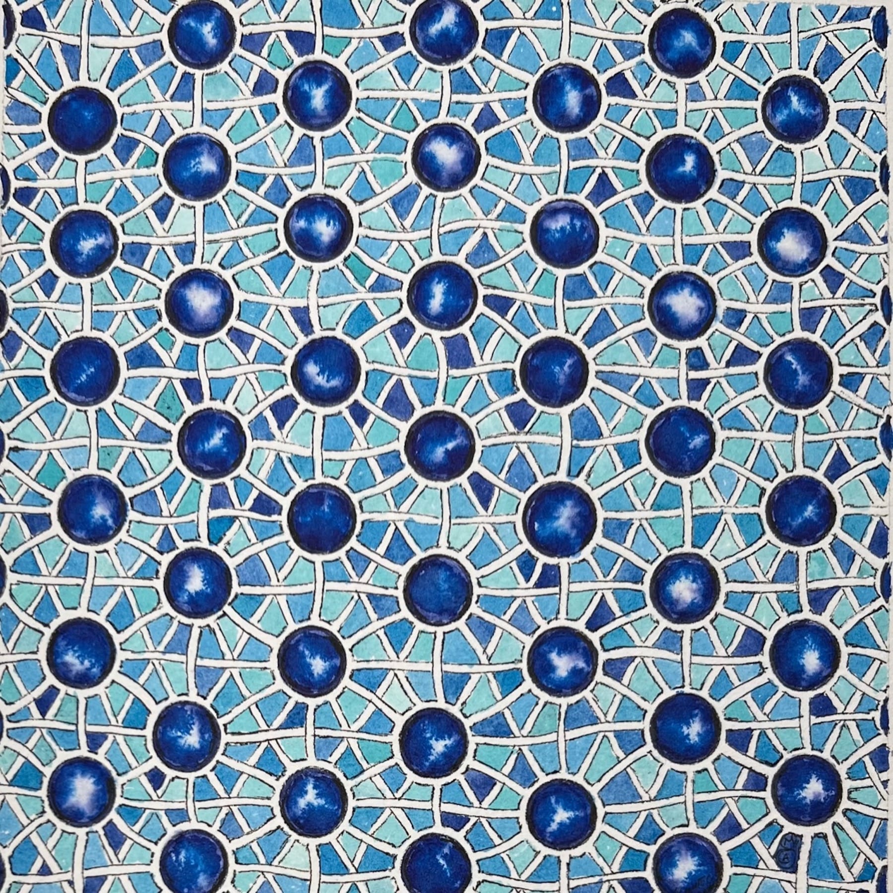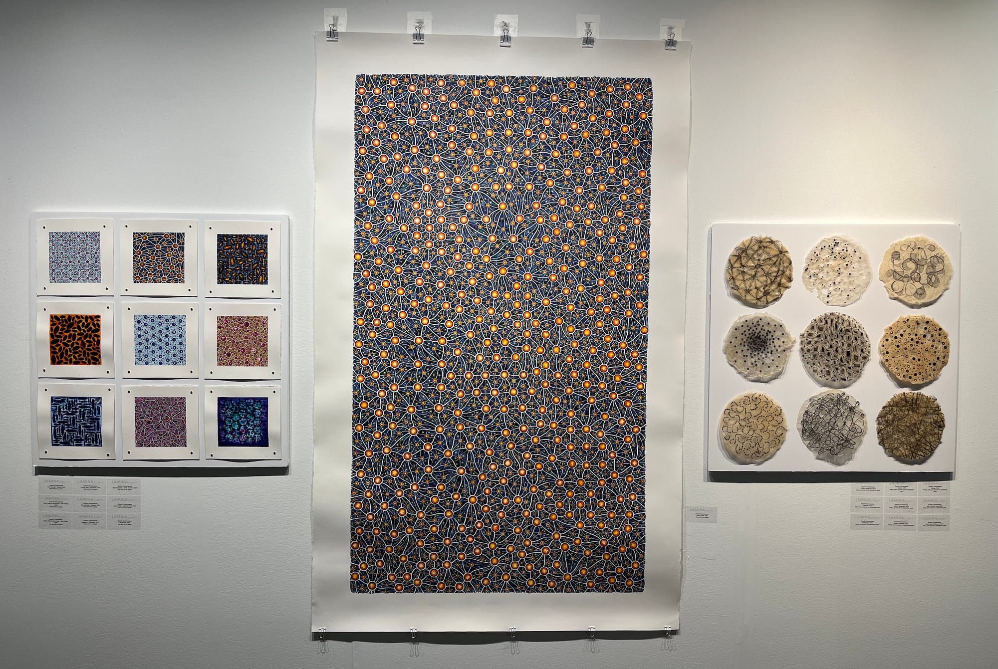 After our shared laugh, Chandrasekar told me about how her multidisciplinary practice weaves a thread (metaphorically and sometimes physically) through the molecular, the cosmic, and what can be seen with the human eye alone. Her obsessive but meditative patterning serves as an attempt in transcribing the universe through naturally occurring motifs rooted in physics, biology, chemistry, and astronomy. Unfazed by mistakes, Chandrasekar both imparts her optimistic passion for understanding the science of life through her joyful, layered, and ever-evolving craft.