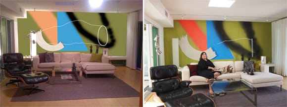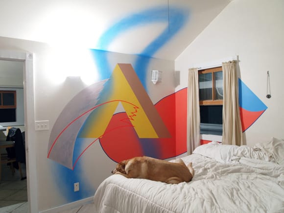 M: Surprises. Everything takes so long to do. Best compositions “violently” “oppose” the space, even indoors in a residential setting. Someone disliked a shape I was using, said it looked like a spent condom. Though I wasn’t going to cave to each resident’s whims, I made a small concession, and changed it. It really was a condom in my mind also.