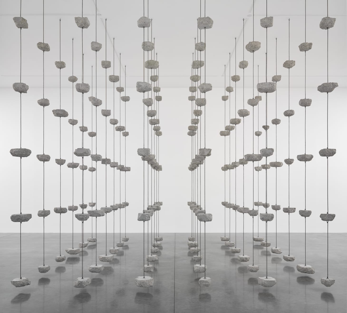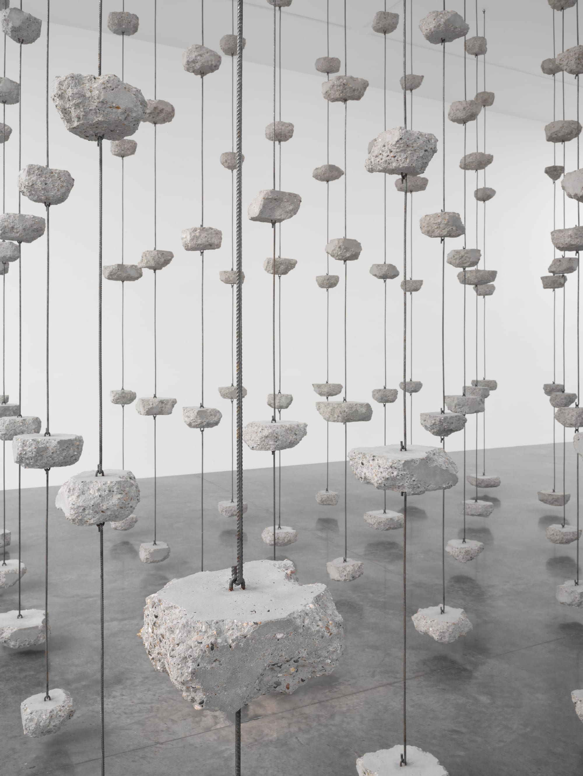 LONDON – Mona Hatoum’s work is often described through long words and large concepts: globalization, geopolitics, imprisonment, destruction, domesticity, precariousness, surveillance. Although these themes are undeniably present, such descriptions make the works seem purely cerebral and downplay their extraordinary physical presence. The installations, sculptures, and works on paper in her current exhibition at White Cube Bermondsey are made of materials drawn from every part of life, ranging from the most human (hair and blood) to the most industrial (magnets and cement). They loom and cower, at one moment inviting us in, at the next shutting us out.