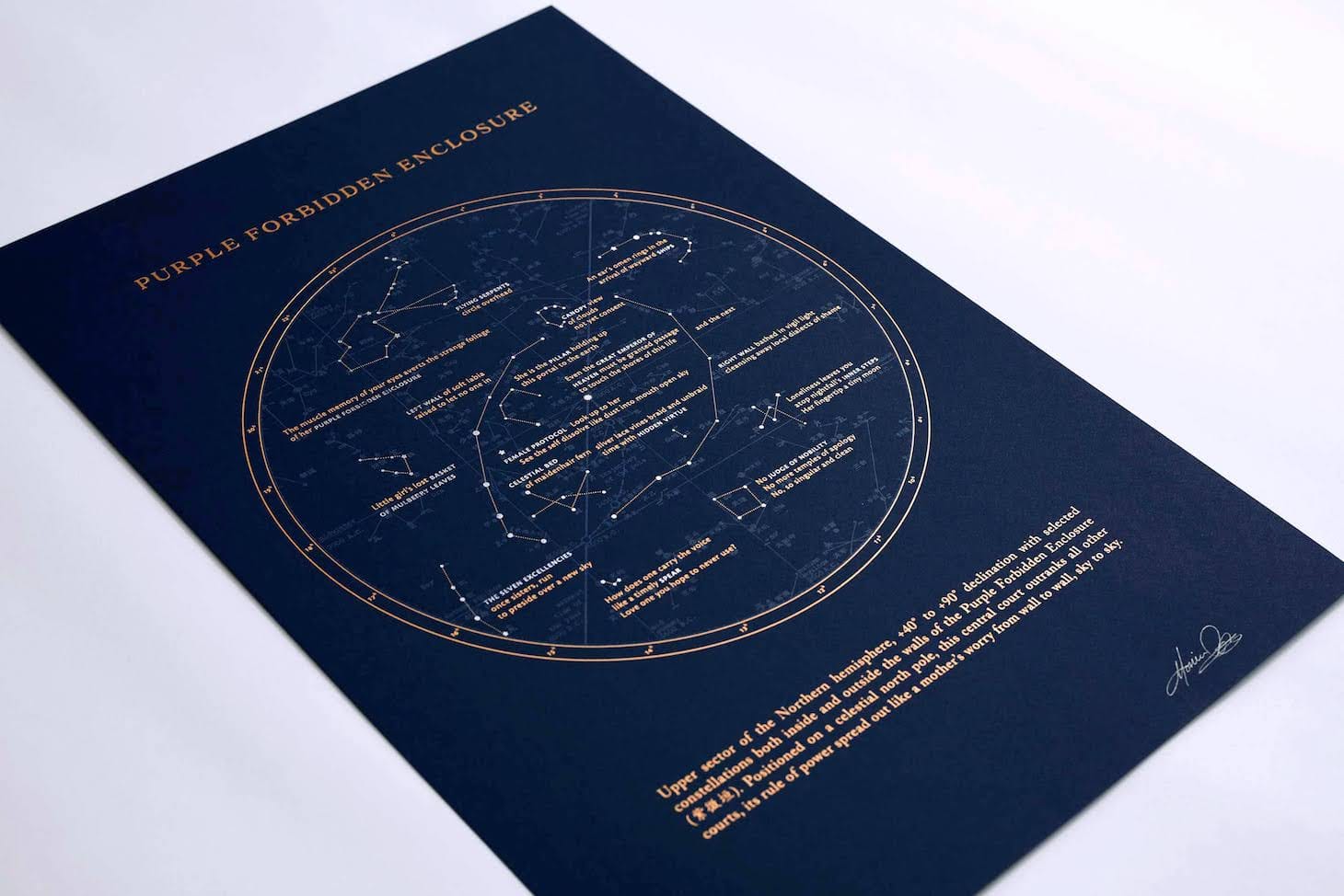 The starting point of Planetaria — the ground on which many of the works were written — is a Chinese star chart, which is significantly different from the Greco-Roman one, in which constellations join distant stars together to map and domesticate the sky. Instead, the Chinese groupings are smaller and known as asterisms.