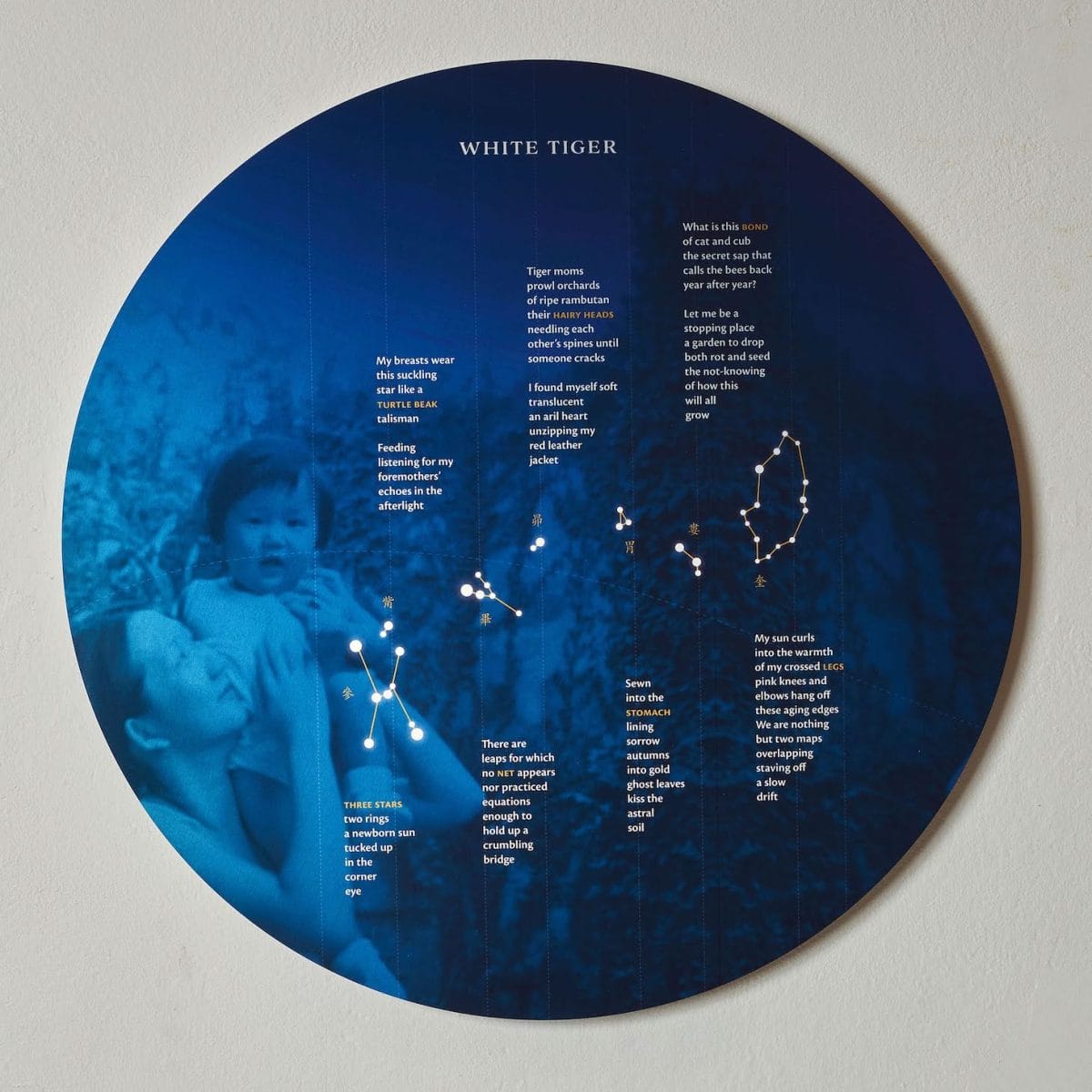 Planetaria is a series of visual poems by Monica Ong that leverage the visual language of astronomy to explore the precarious territories of motherhood, women in science, and diaspora identity. Playfully taking poetry off the page as light box assemblages and handheld volvelle poems, this series seeks to imagine the sky from a female perspective, examining the power struggles that myth-making elicits.