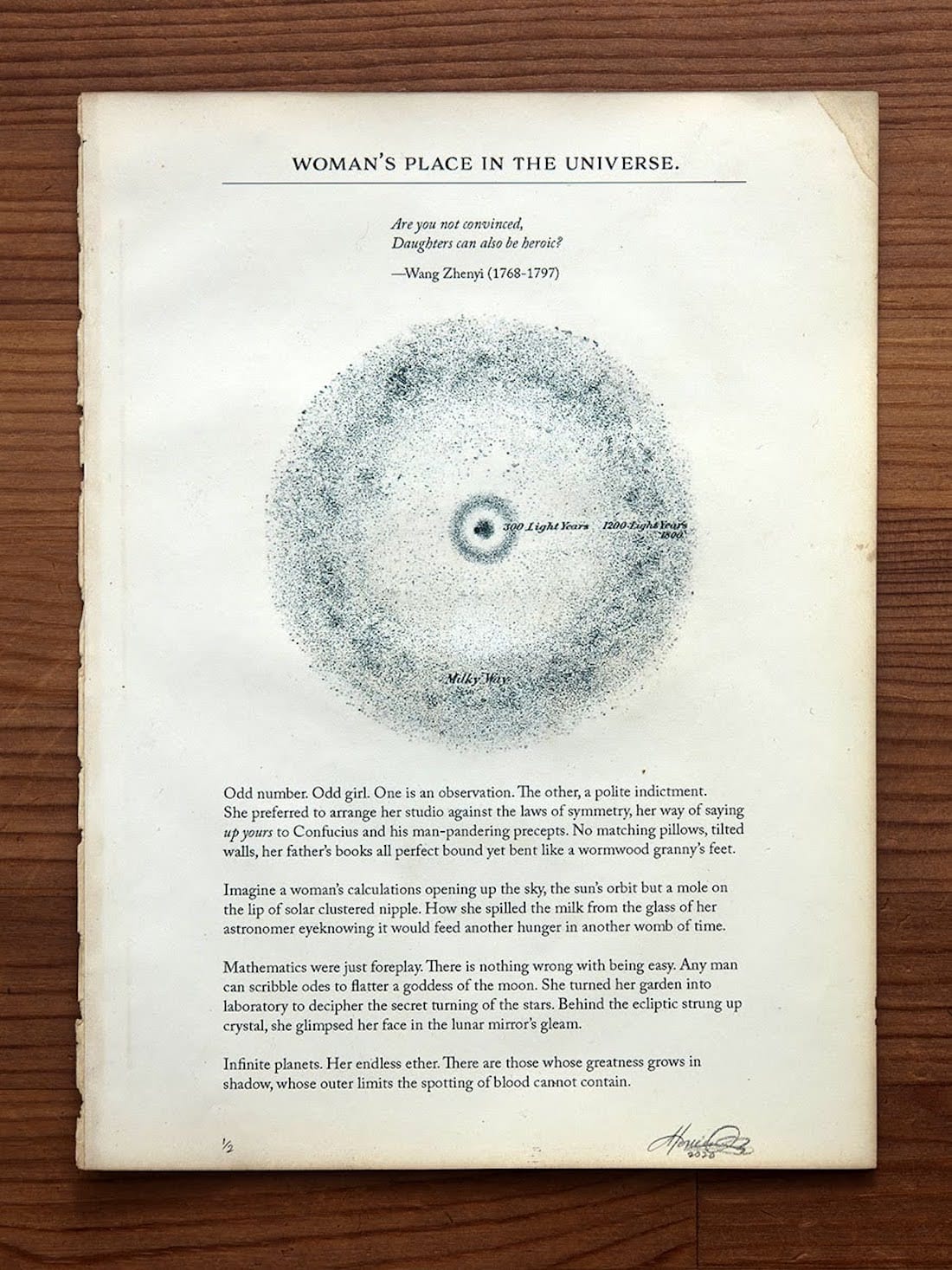 This visual poem rewrites the constellations of the Chinese northern celestial pole from a female gaze, framing each asterism as a stop on the precarious journey of womanhood.
