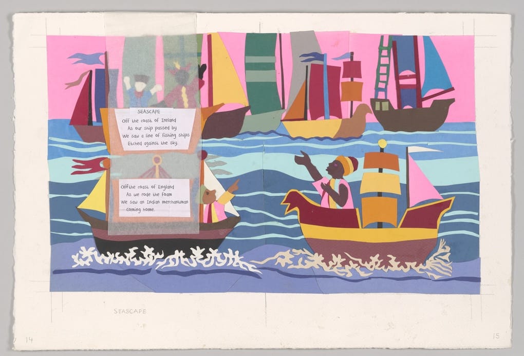 The colorful collages and preliminary drawings that Ashley Bryan made for Sail Away, an illustrated children’s book of Langston Hughes poems about water, were acquired by the Morgan Library & Museum in New York. Donated by the Ashley Bryan Center, which is dedicated to preserving and promoting the 97-year-old artist’s oeuvre, this is the Morgan’s first major acquisition of work by a Black children’s author and illustrator.