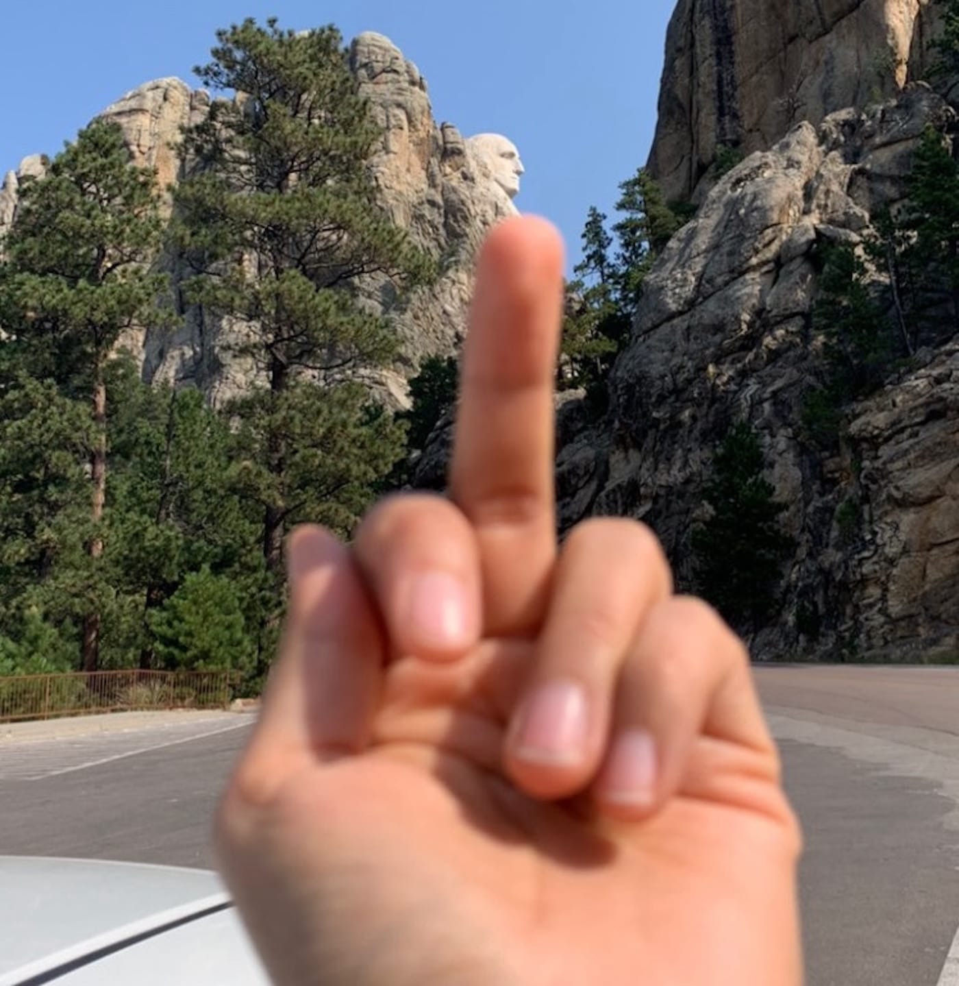 But on my most recent visit in 2022, I felt as though I were on the set of a horror movie, with patriotic zombies shuffling out of the pine trees. I always encourage my passengers to flip an obligatory bird toward the monument. I remind people that this is what we have survived: town-destroyer George Washington, enslaver Thomas Jefferson, racist Theodore Roosevelt, and Abraham Lincoln, who ordered the hanging of the Dakota 38 + 2. As much as this ode to the institutions of settler colonial violence is designed to inflict terror upon me, it also fails — my rootedness in the Black Hills will always be a comfort that persists beyond erasure.